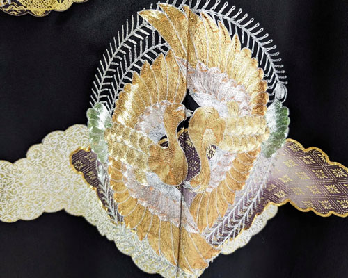金駒刺繍が繊細に輝き、格式ある黒留袖ならではの重厚感と華やかさを楽しめます。