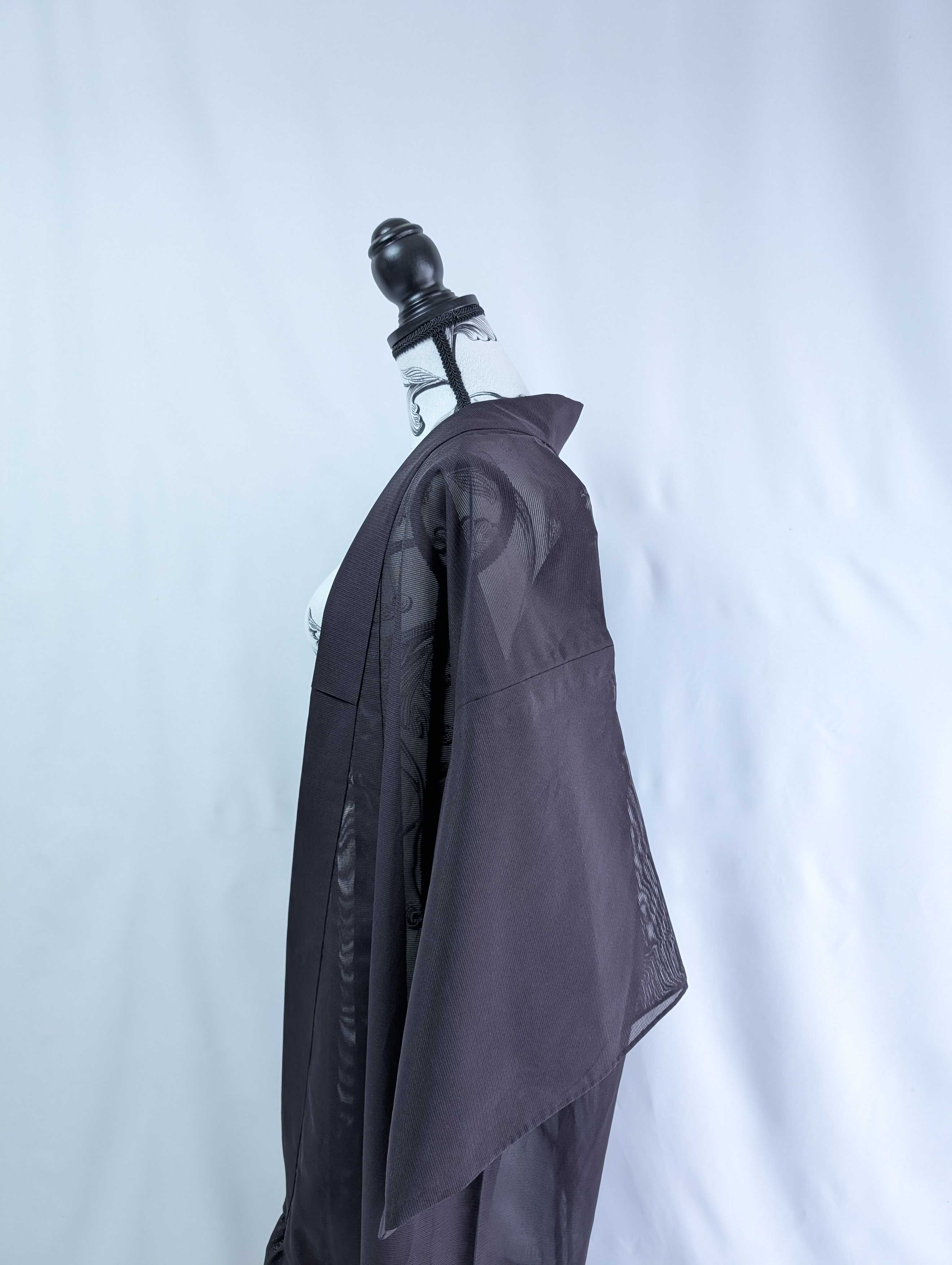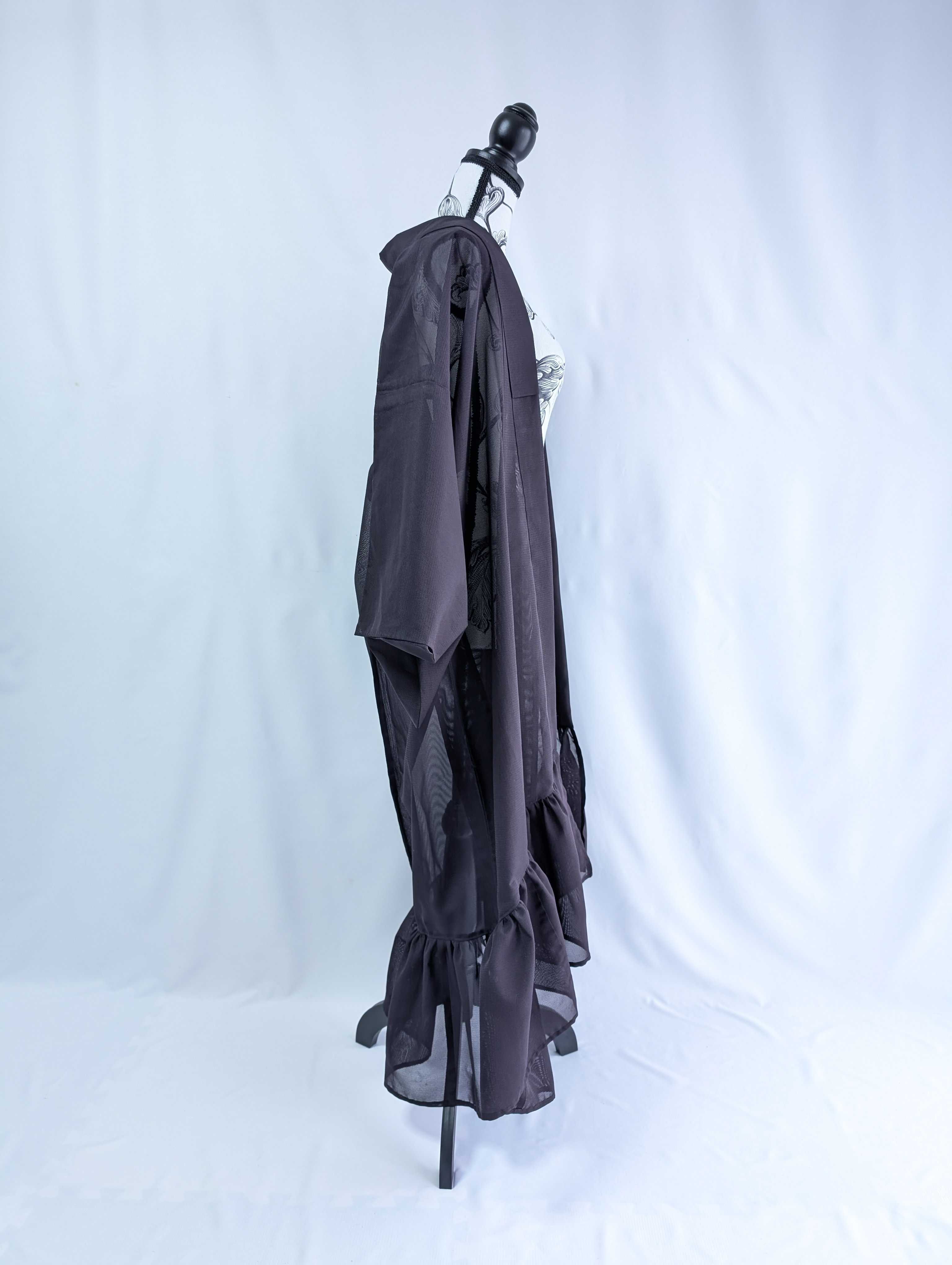深く奥行きのある至極色が際立つ、絽のシースルーフリルガウン。