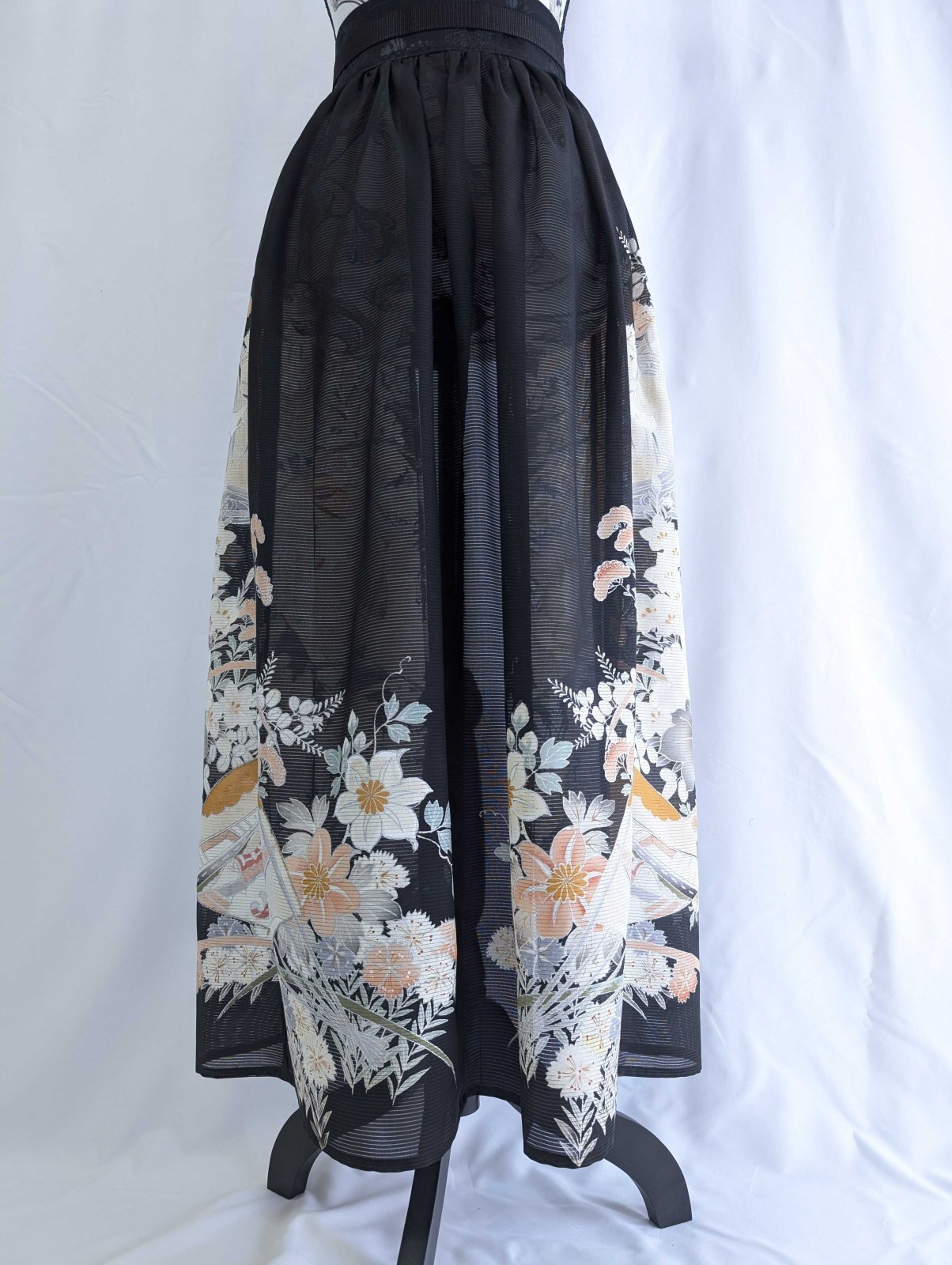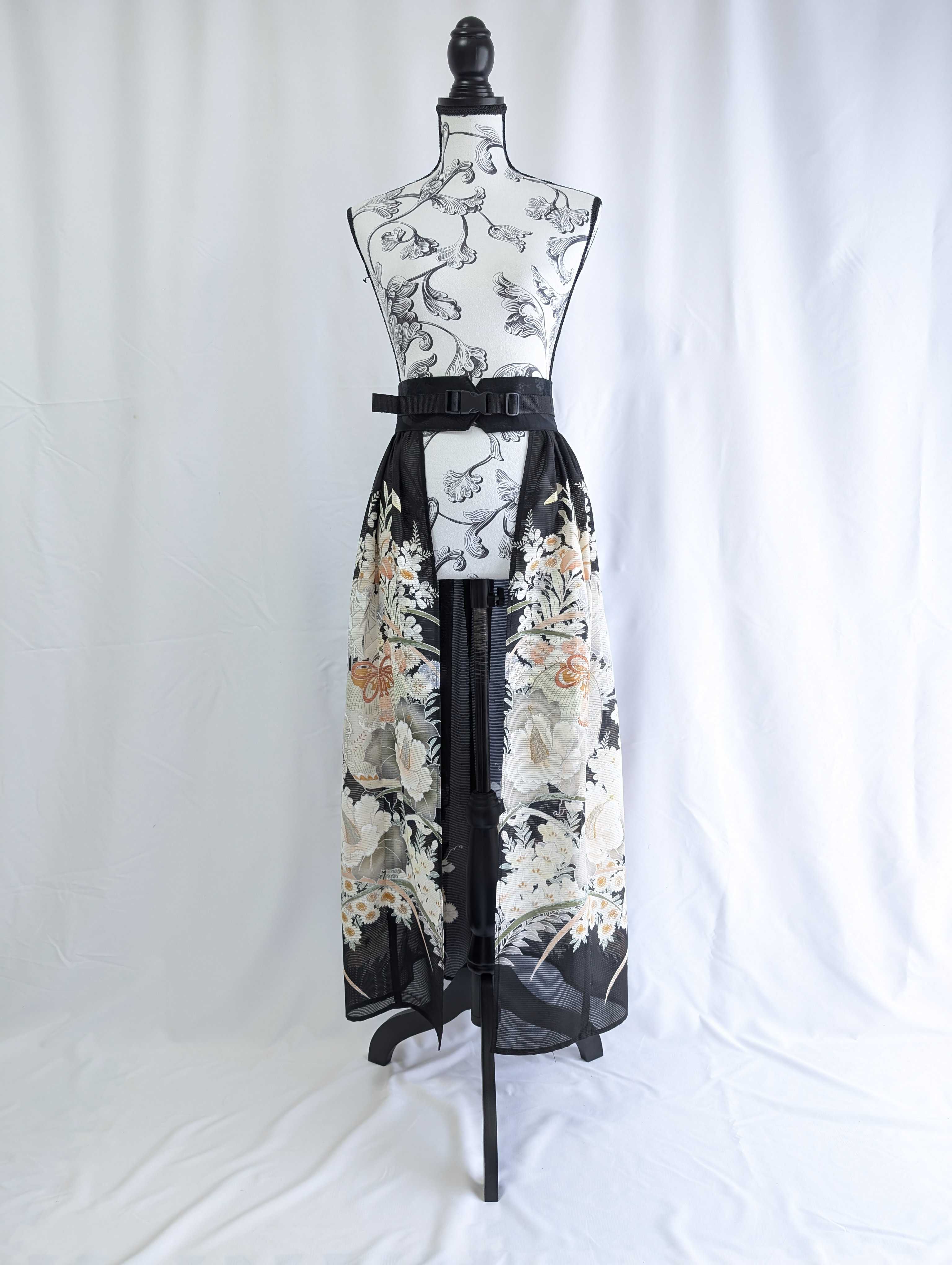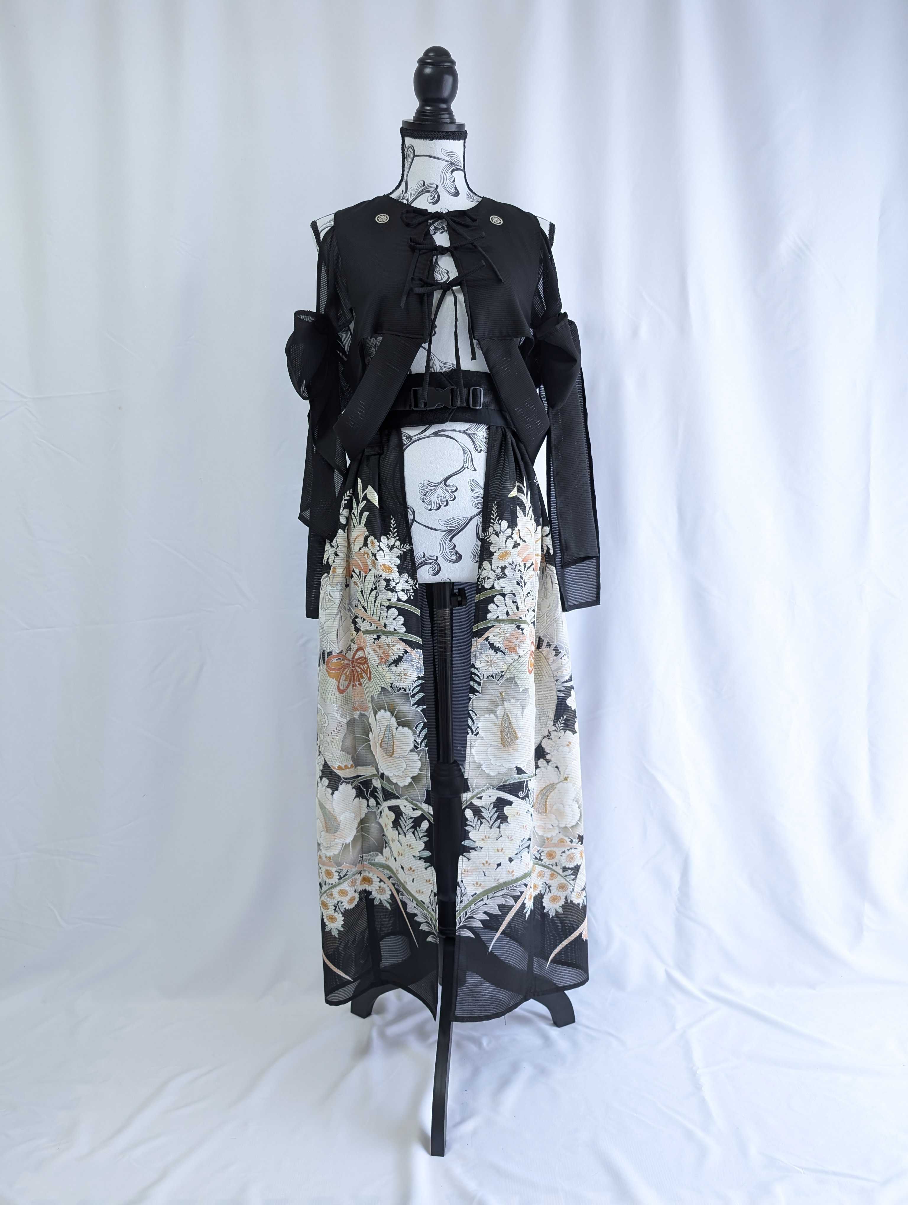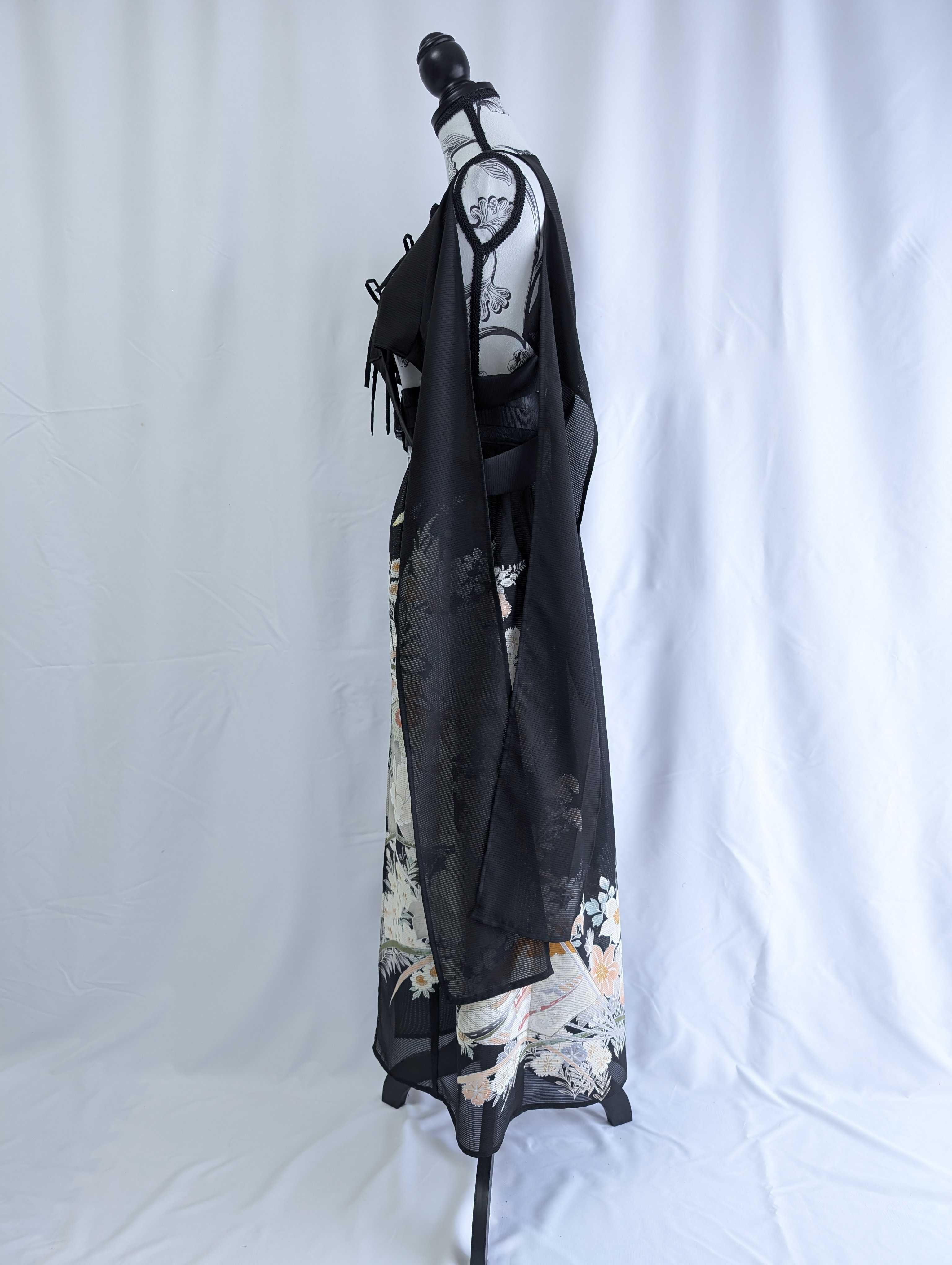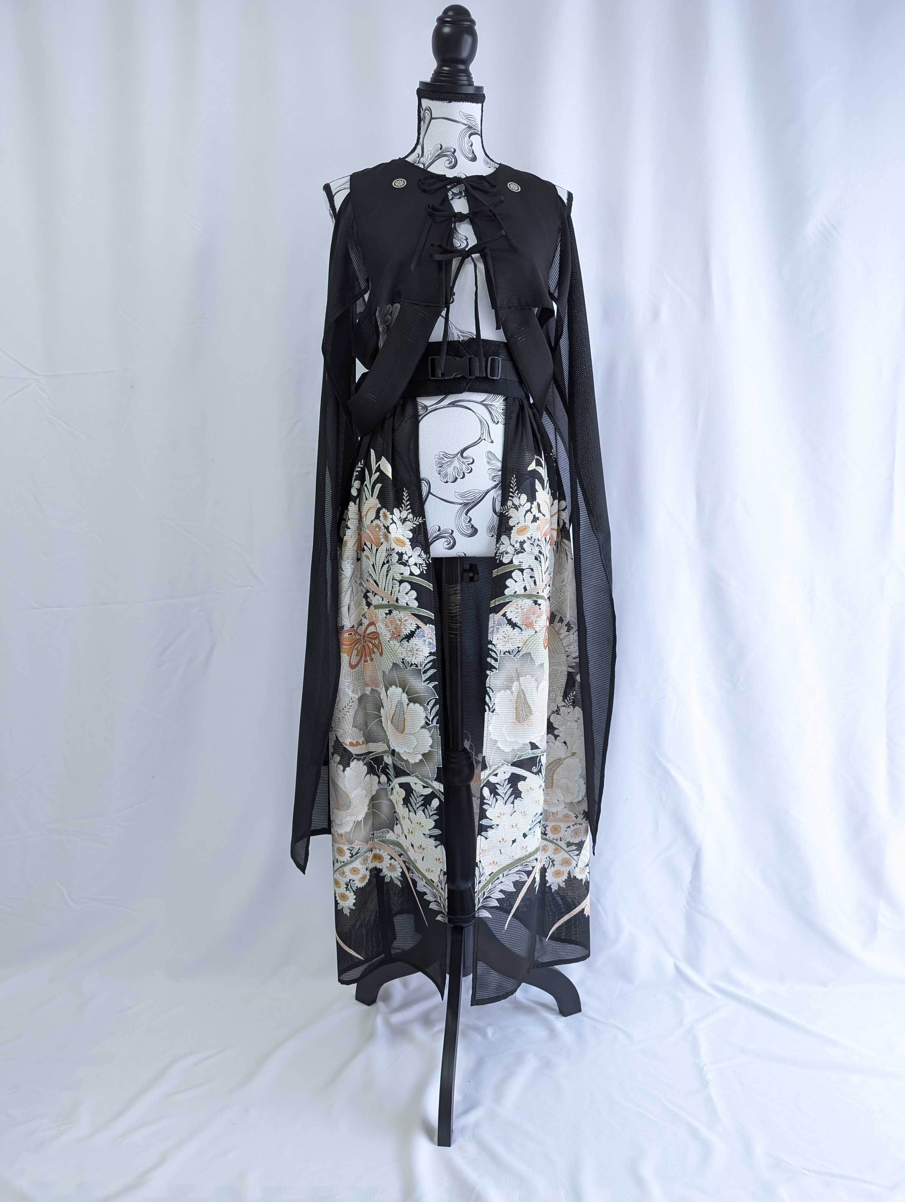 【百花繚乱】黒留袖シースルーオーバースカートセットアップ