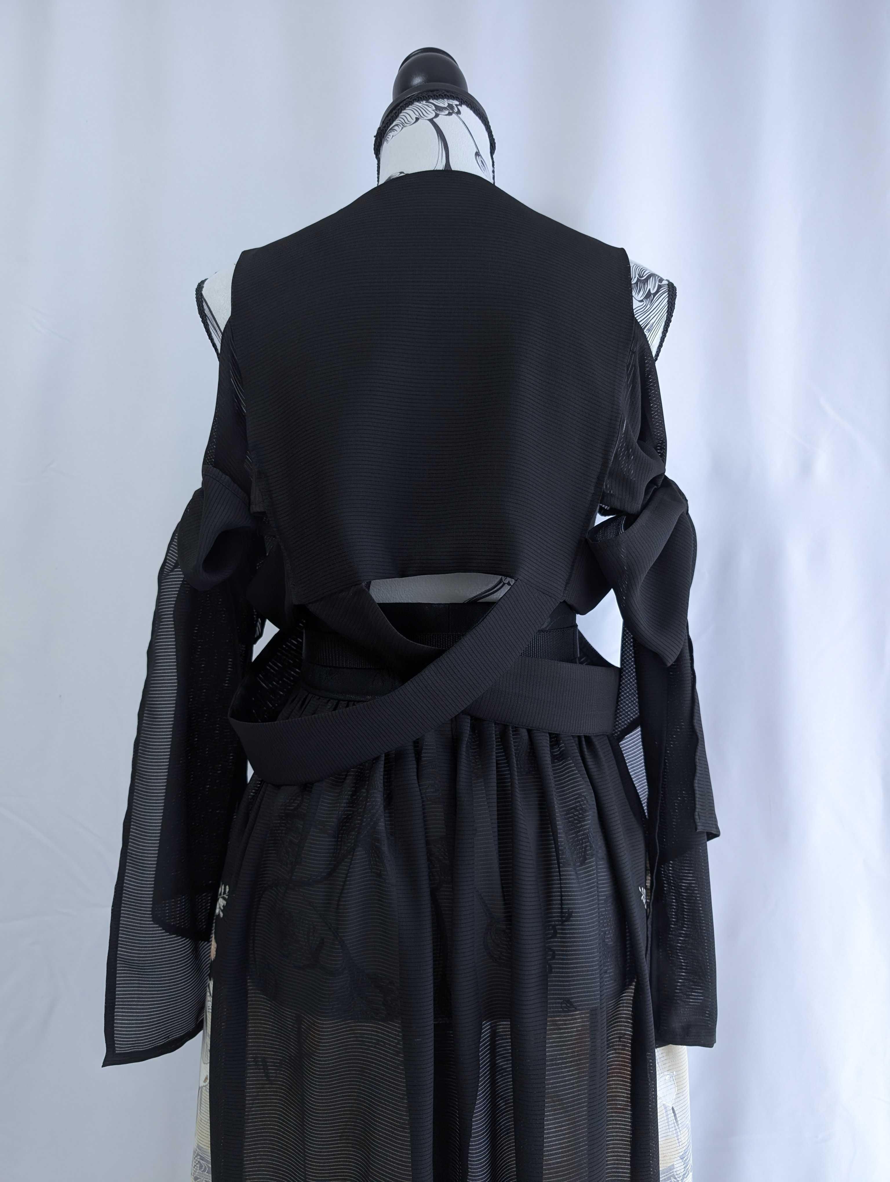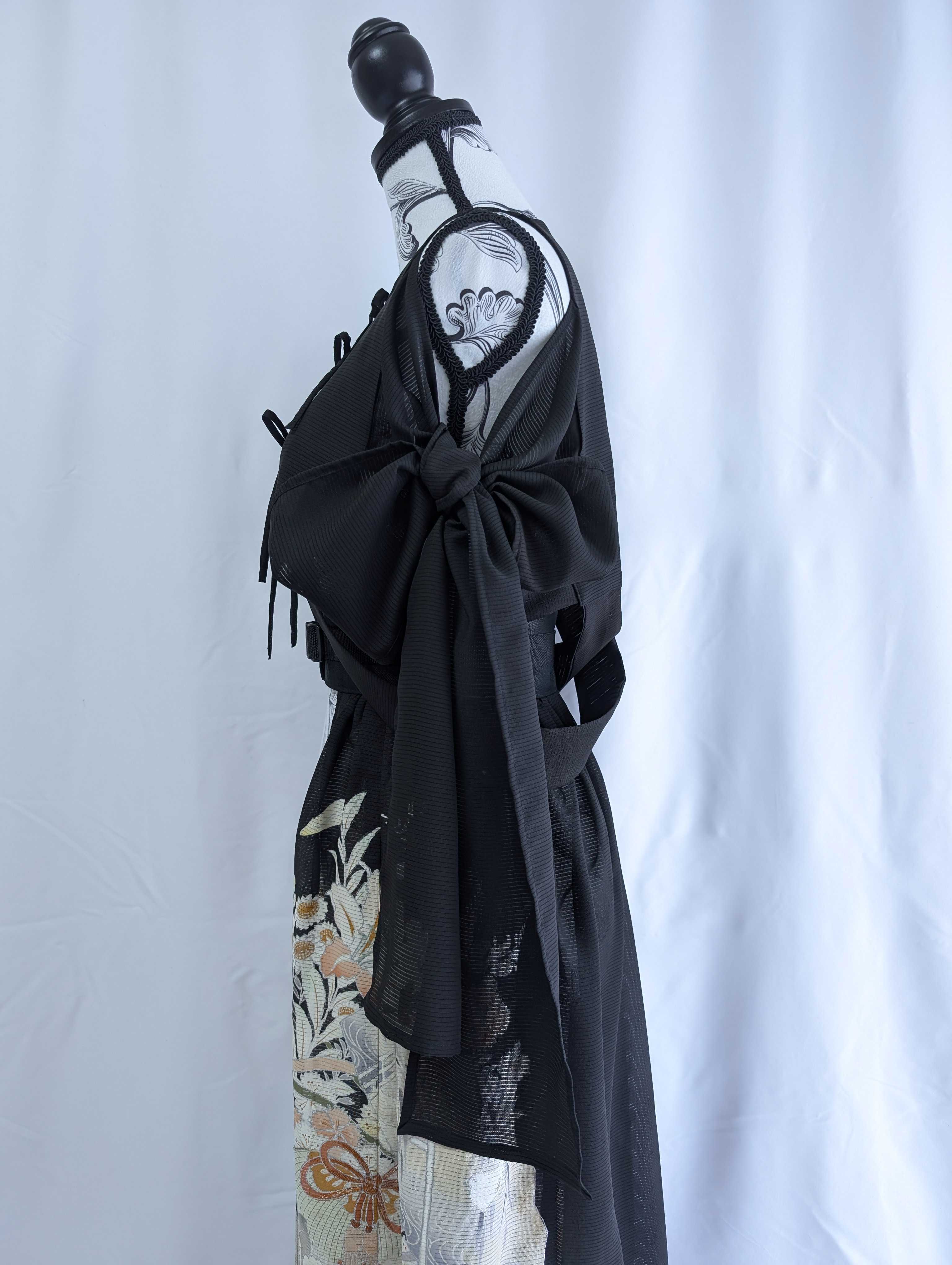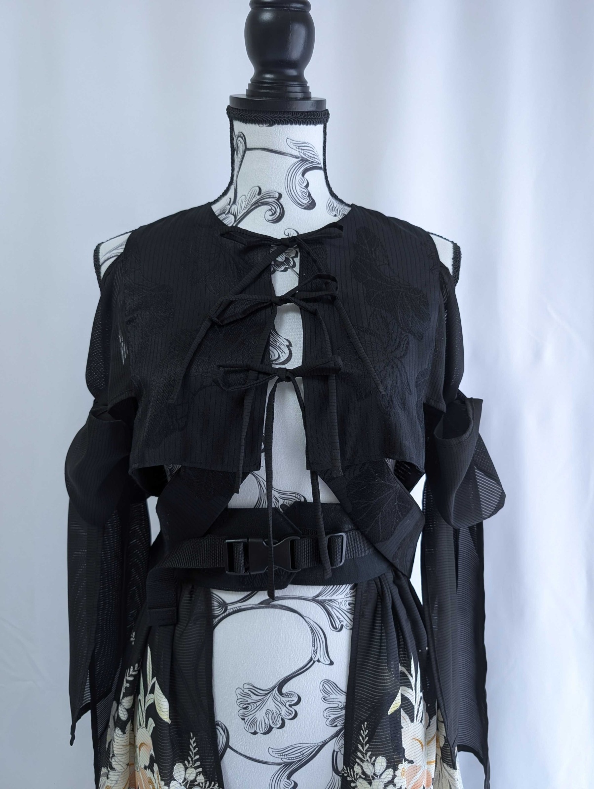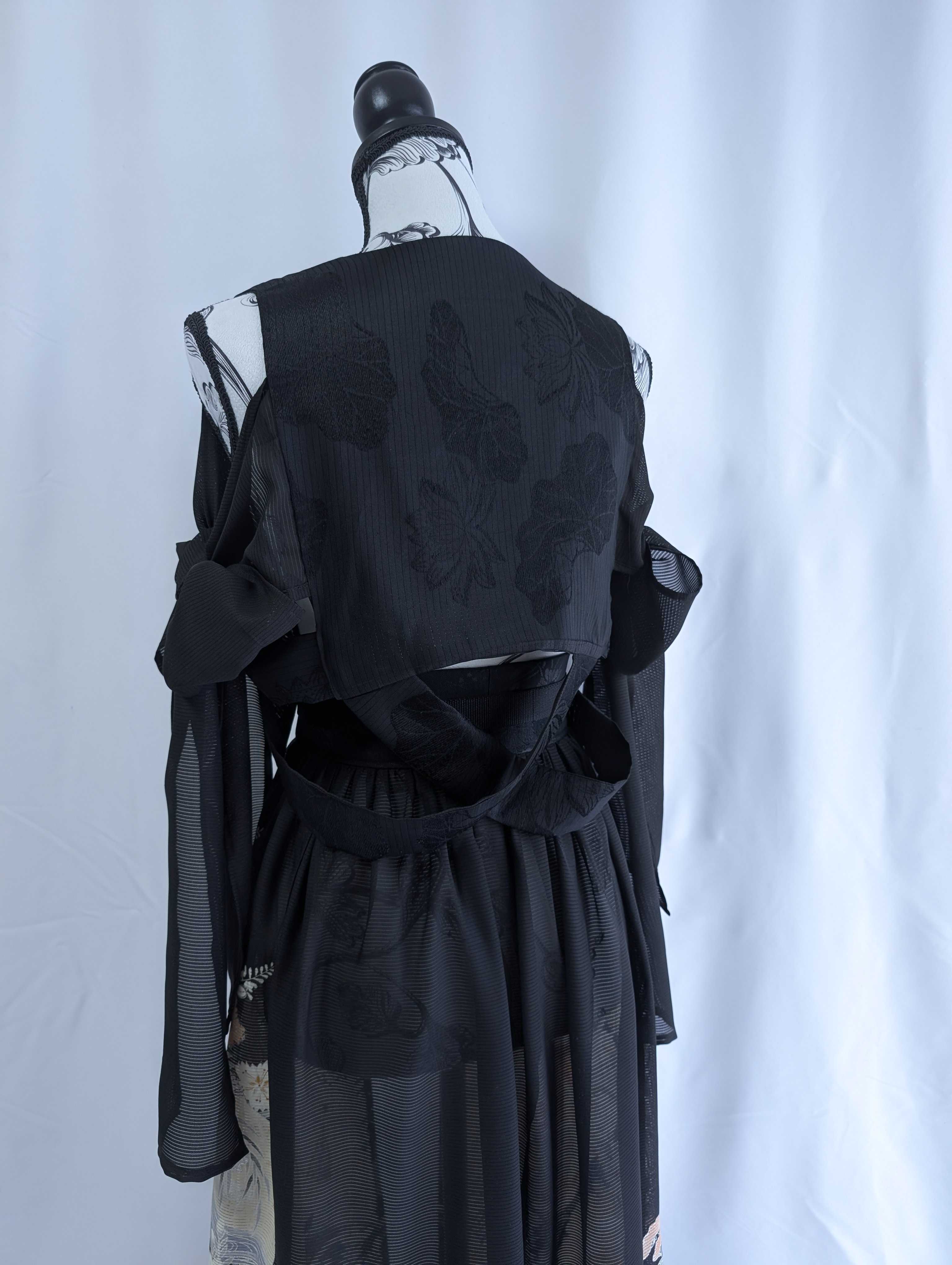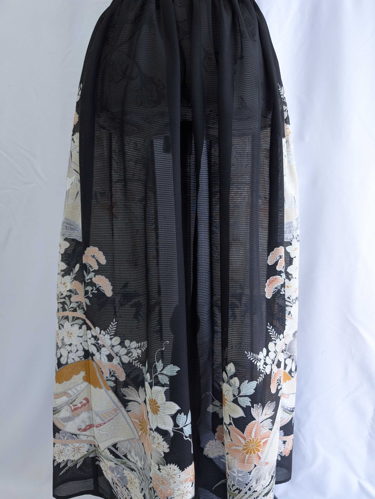 【百花繚乱】黒留袖シースルーオーバースカートセットアップ