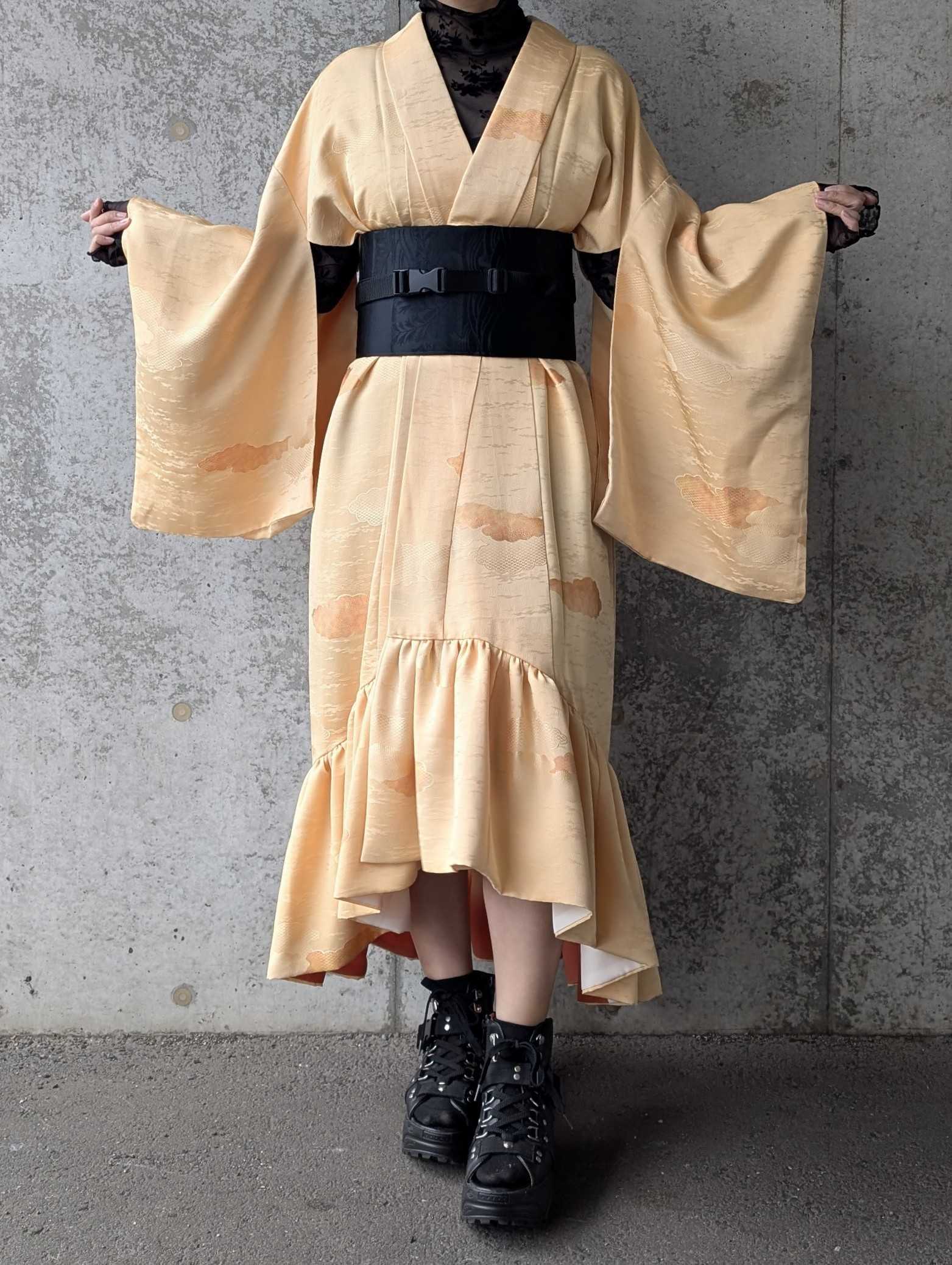 袖は着物本来の形を残し、肩まわりにゆとりを持たせた構築的なシルエット。