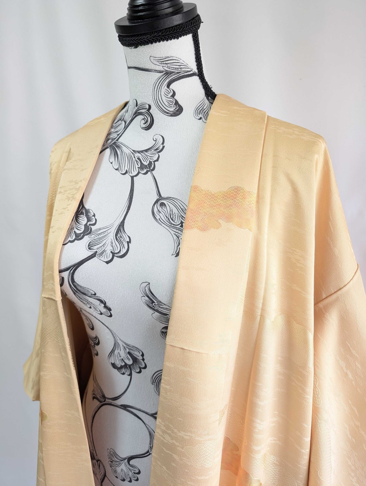 雲取りの地紋が繊細に浮かび上がり、生地の陰影に奥行きを与えます。