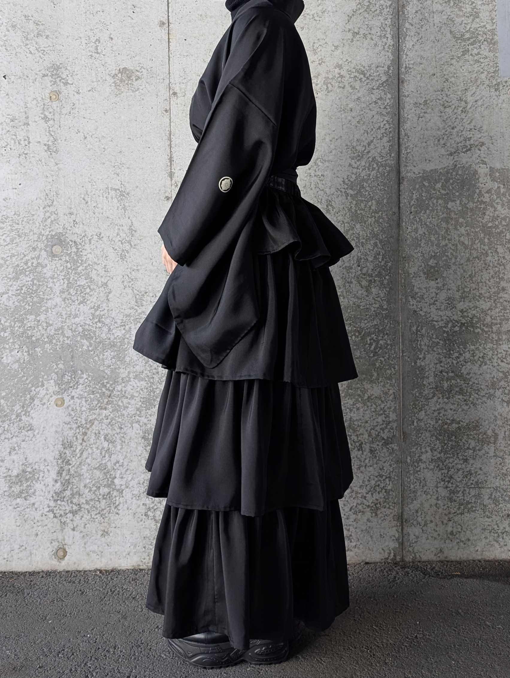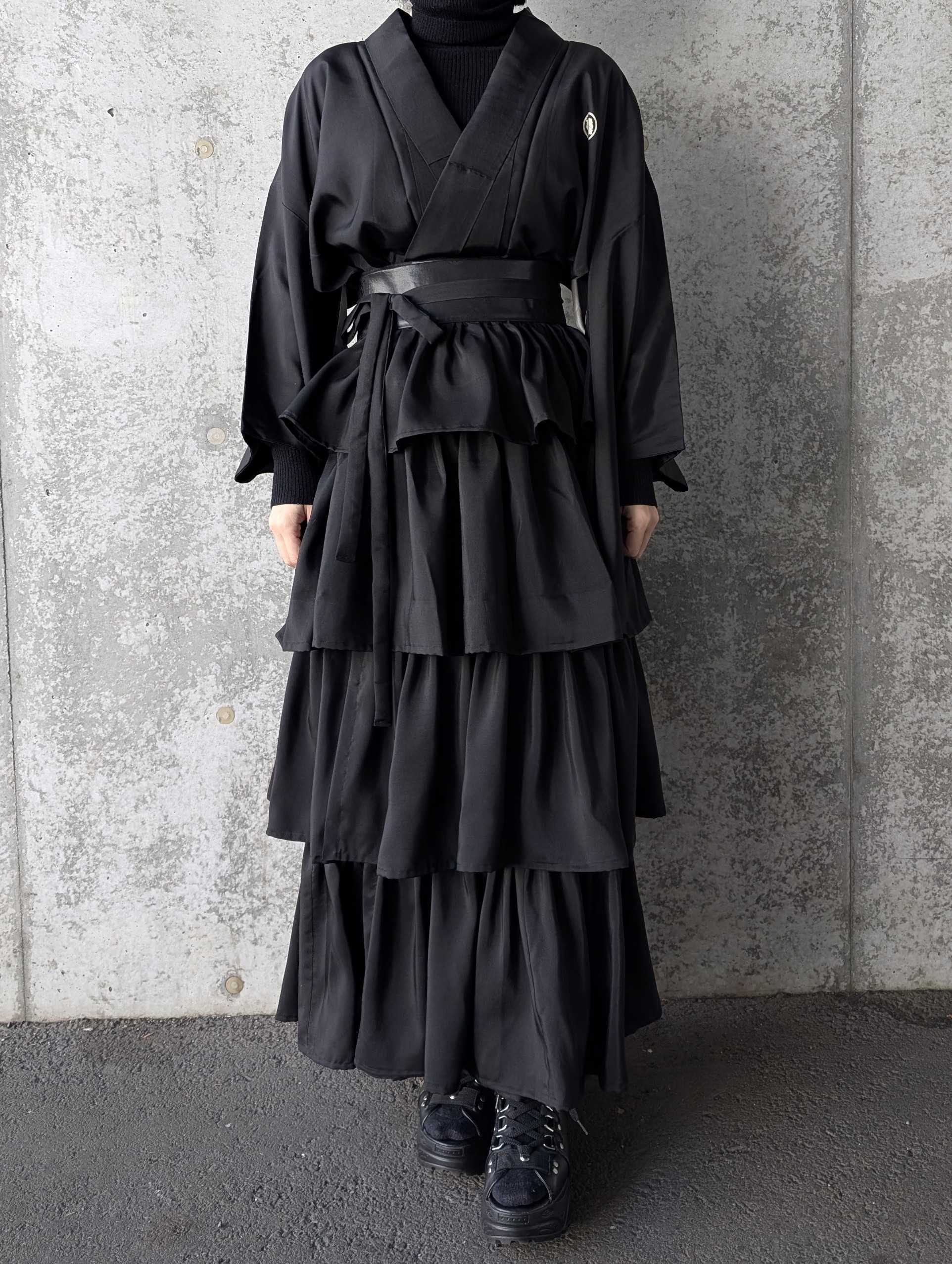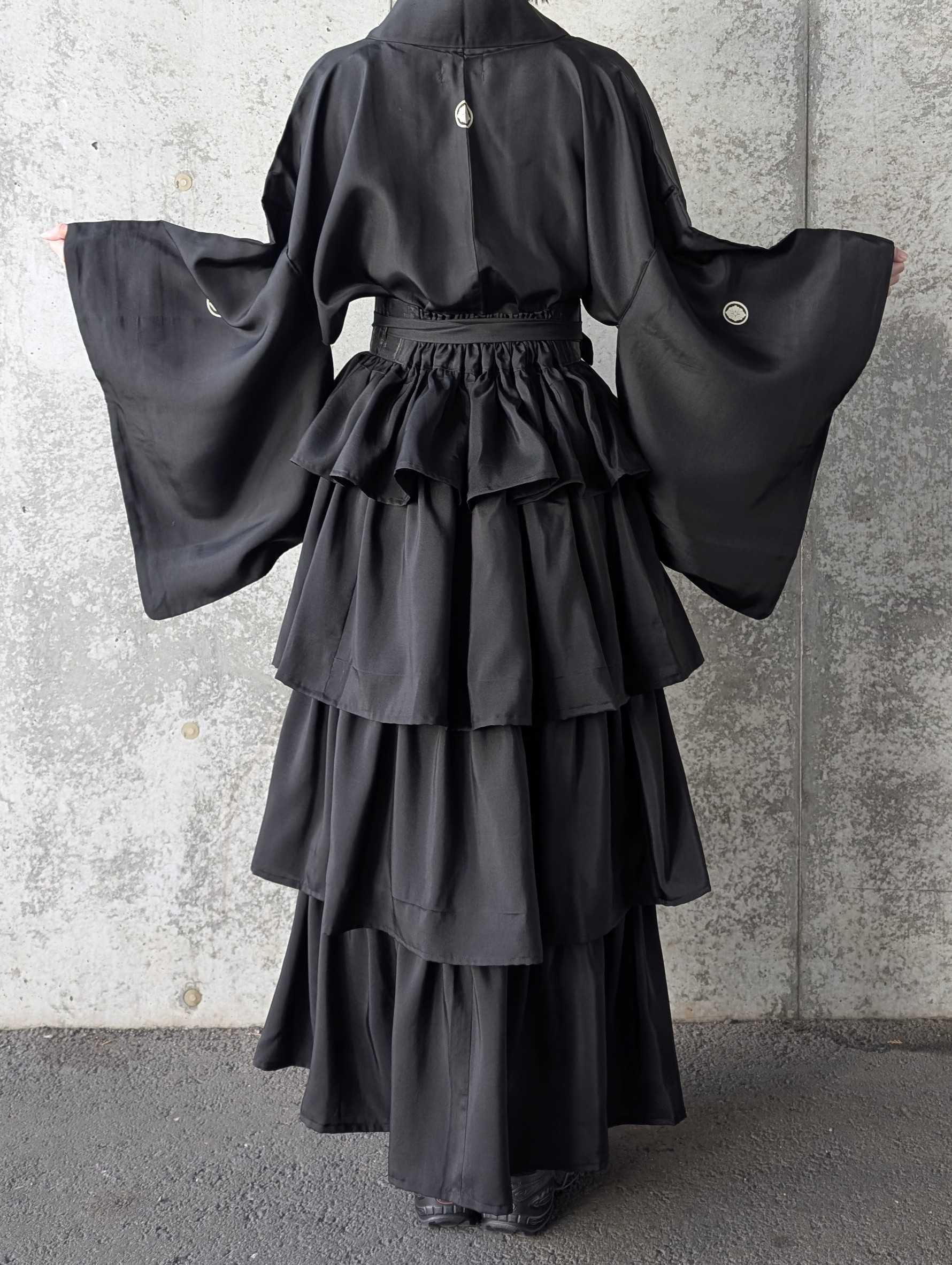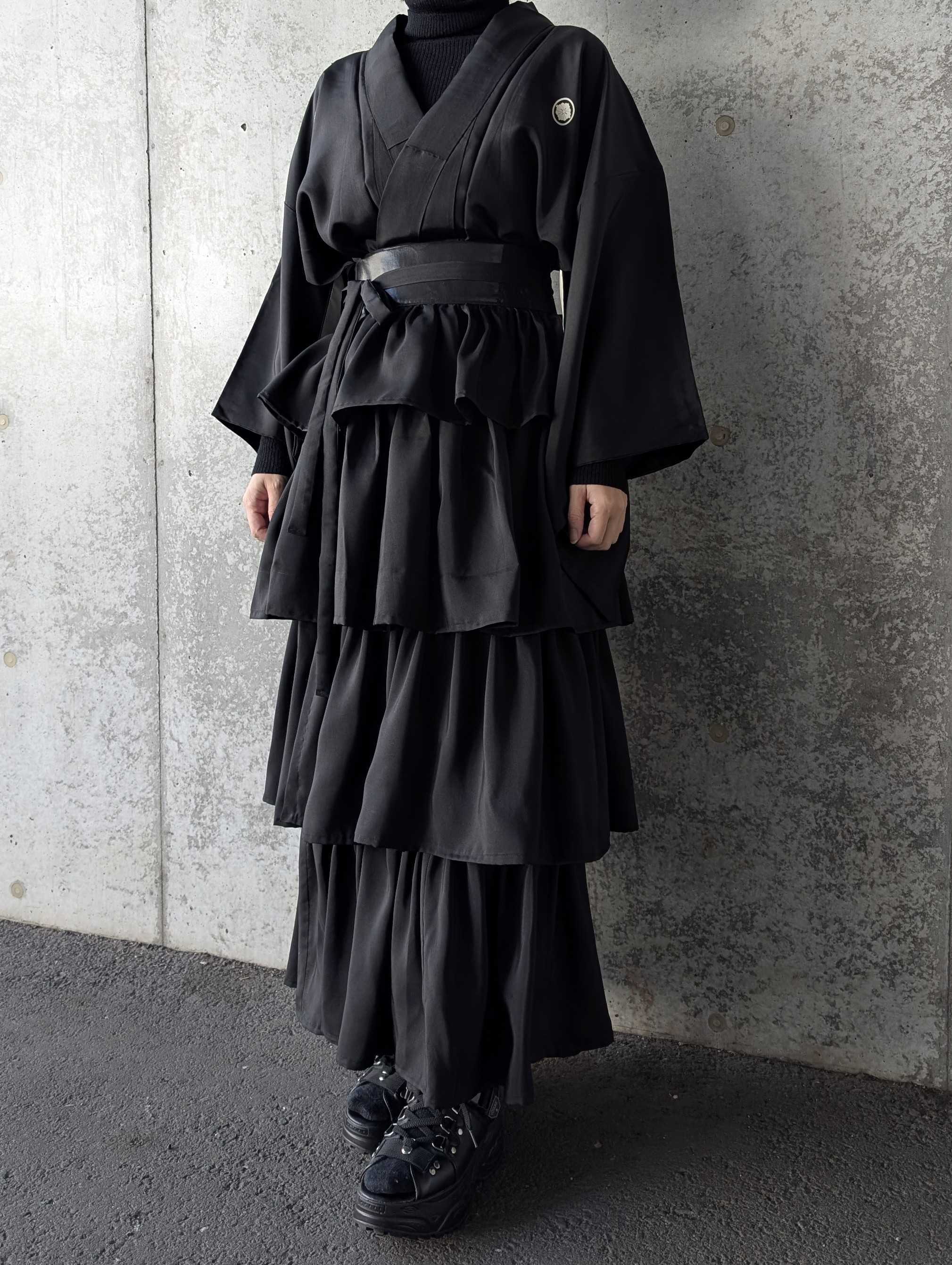 【丸に剣花菱】黒紋付フリルティアードラップスカートセットアップ