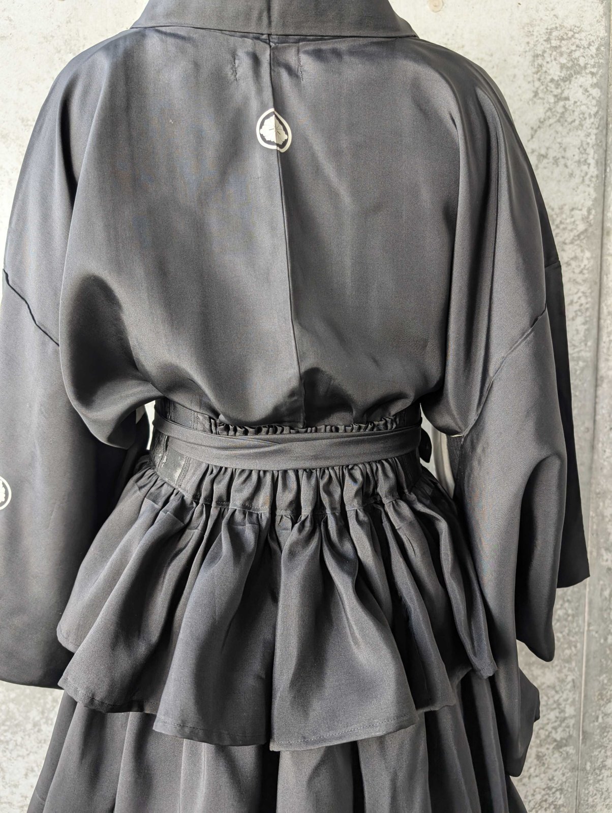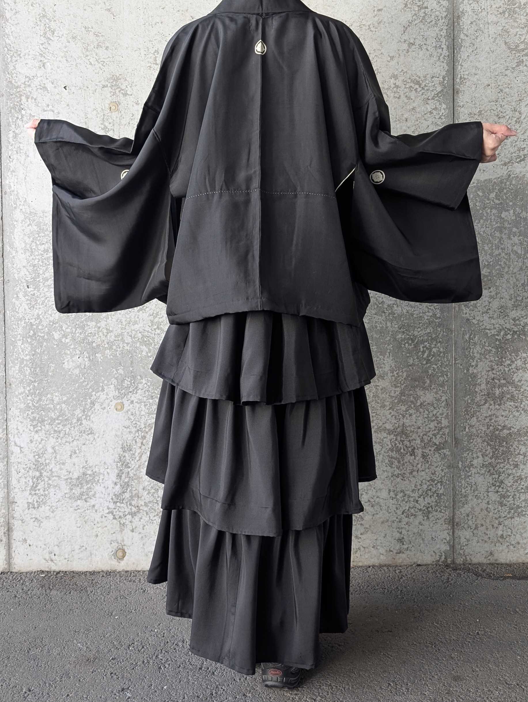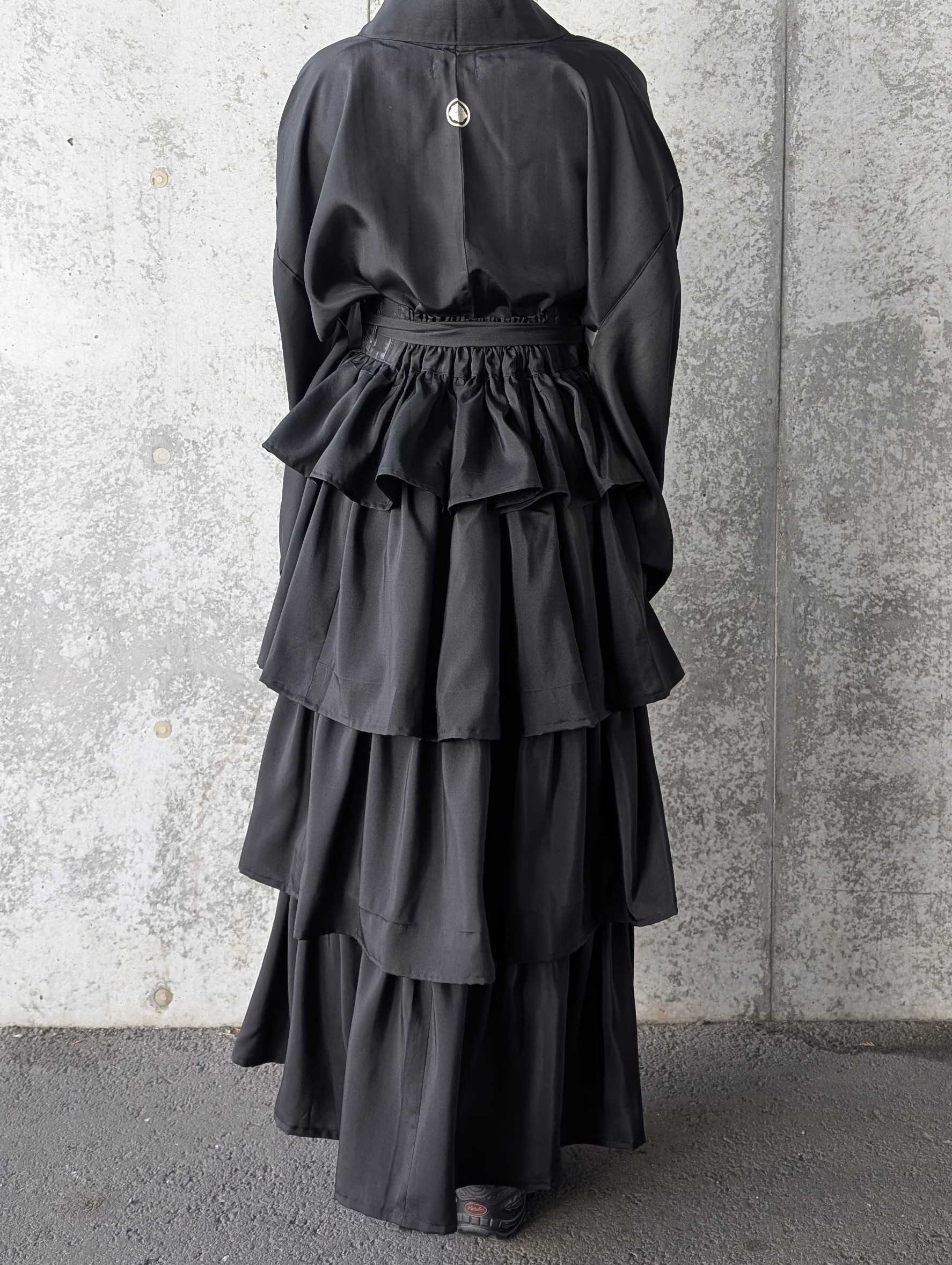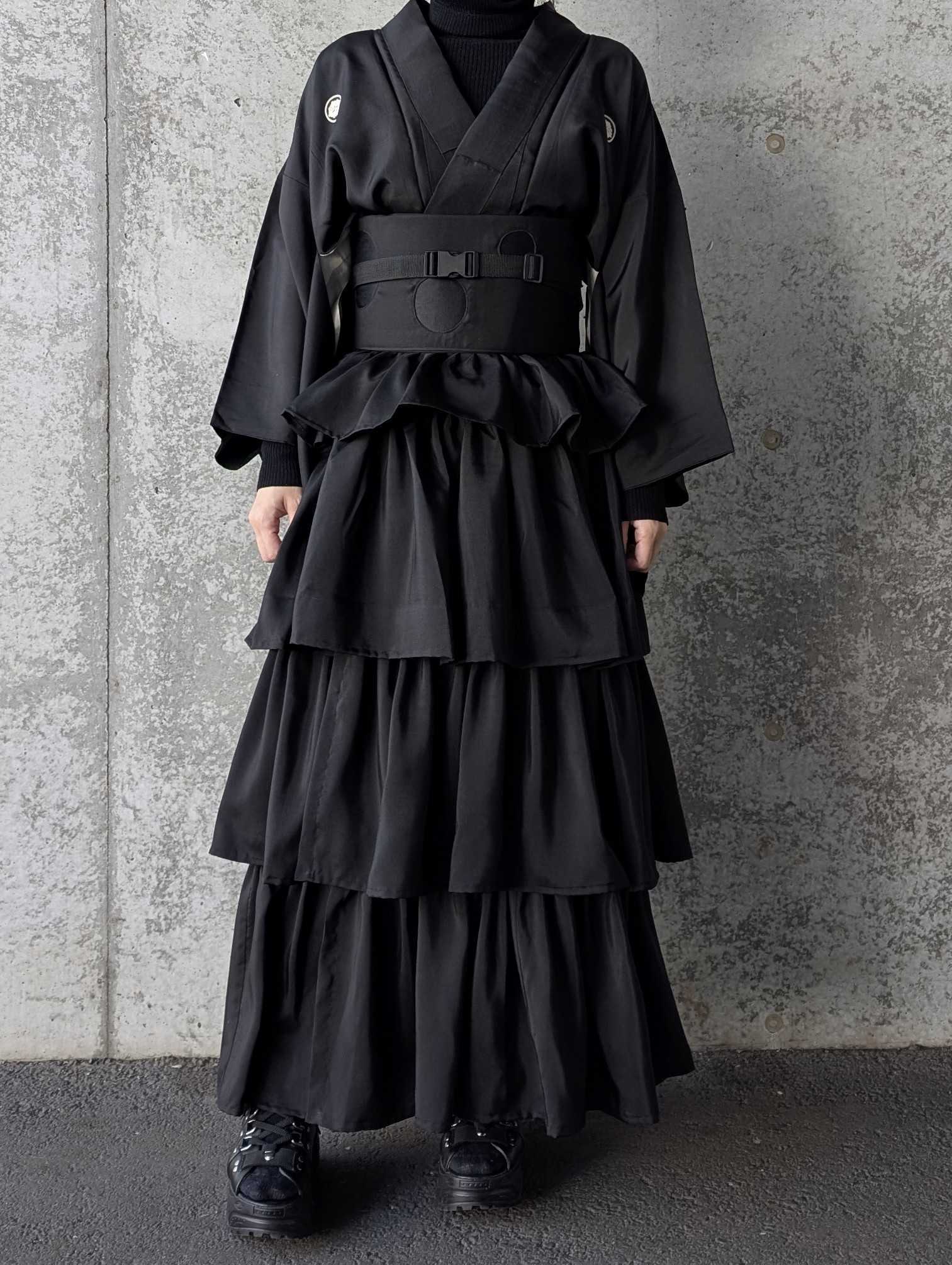 【丸に剣花菱】黒紋付フリルティアードラップスカートセットアップ
