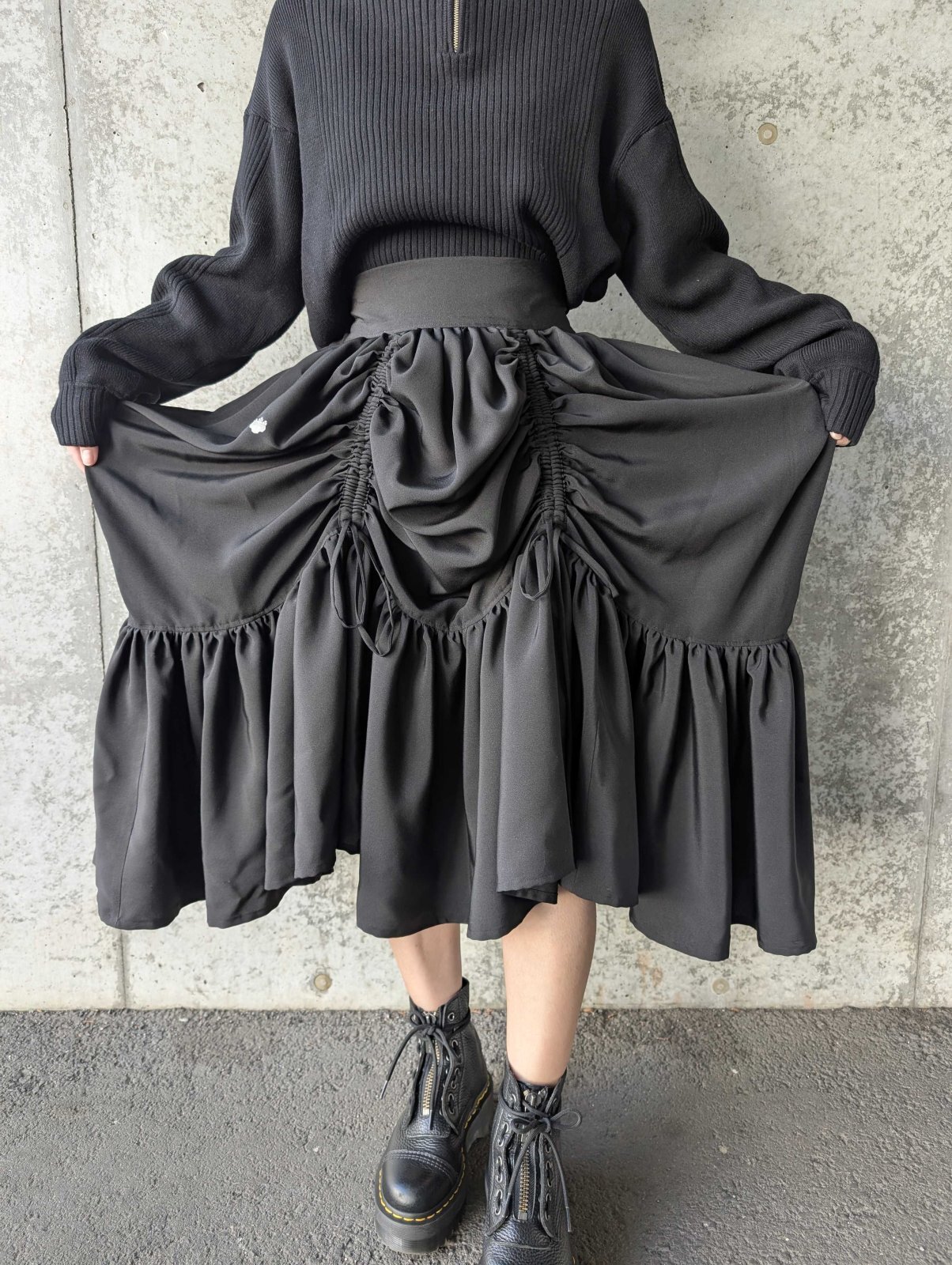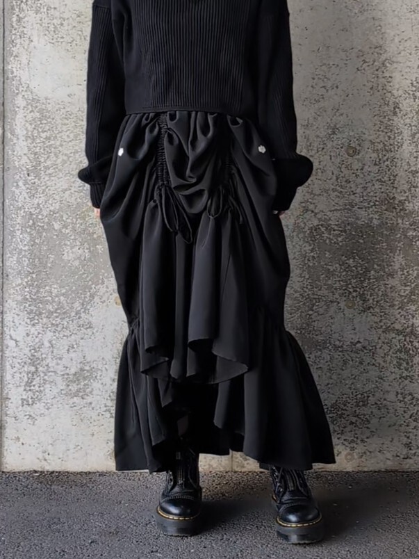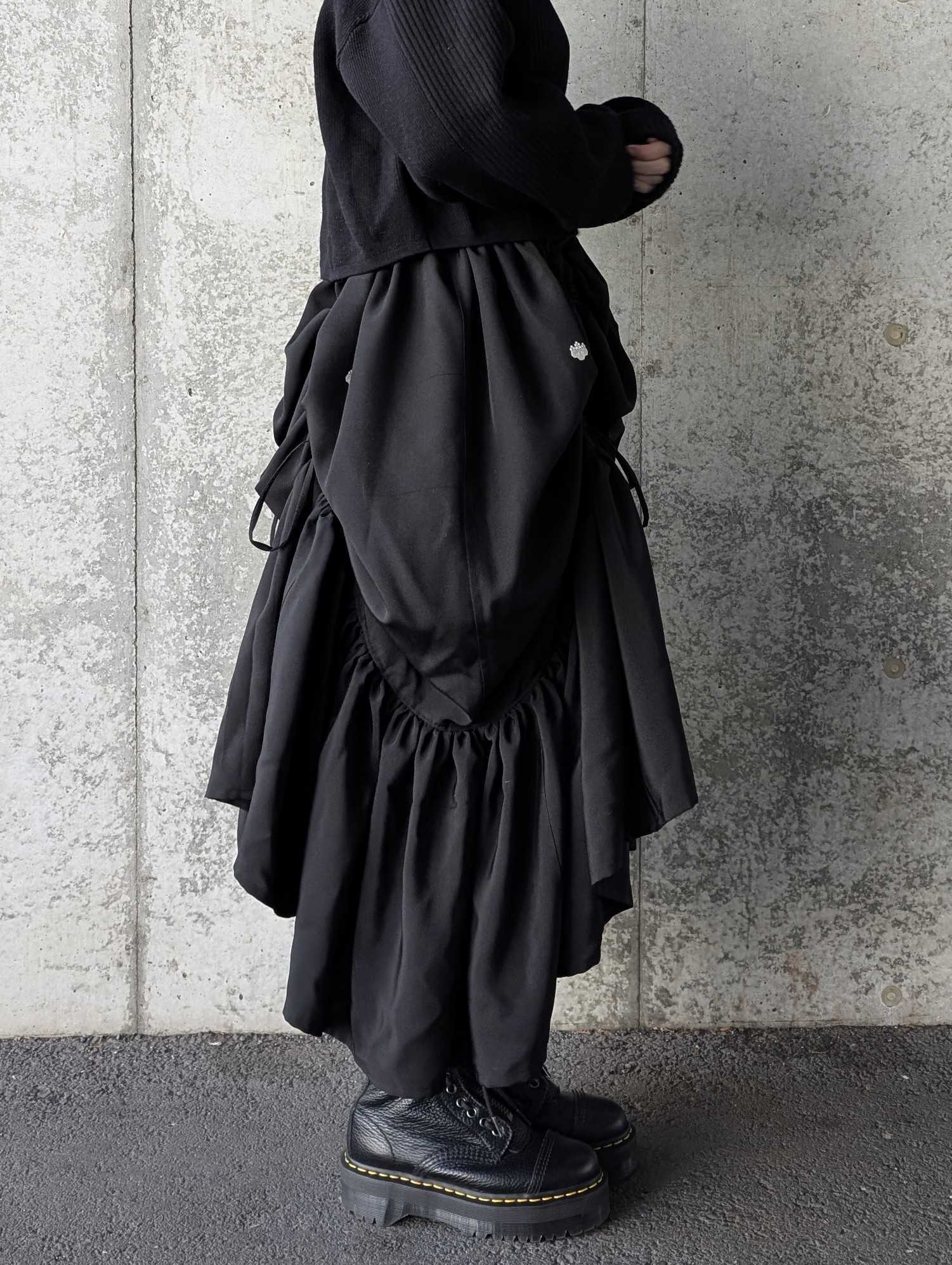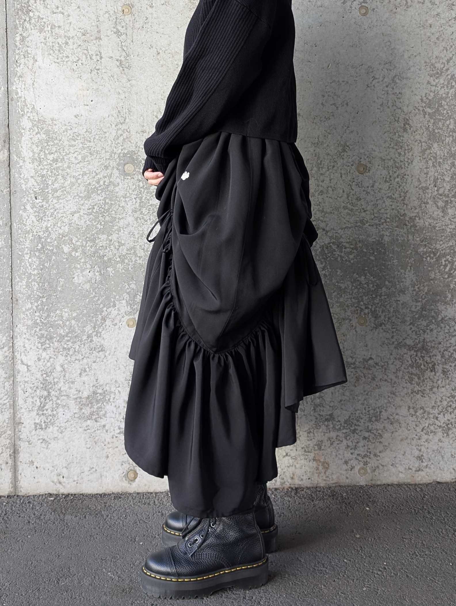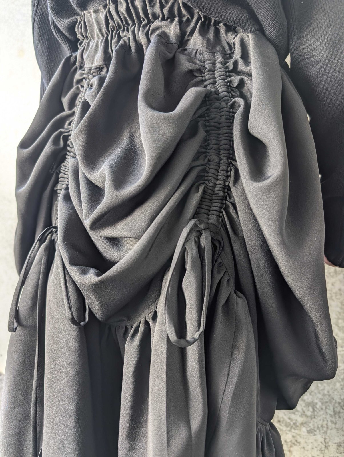 黒紋付をリメイクし、多角的なドレープ構造を持たせた変形スカート。