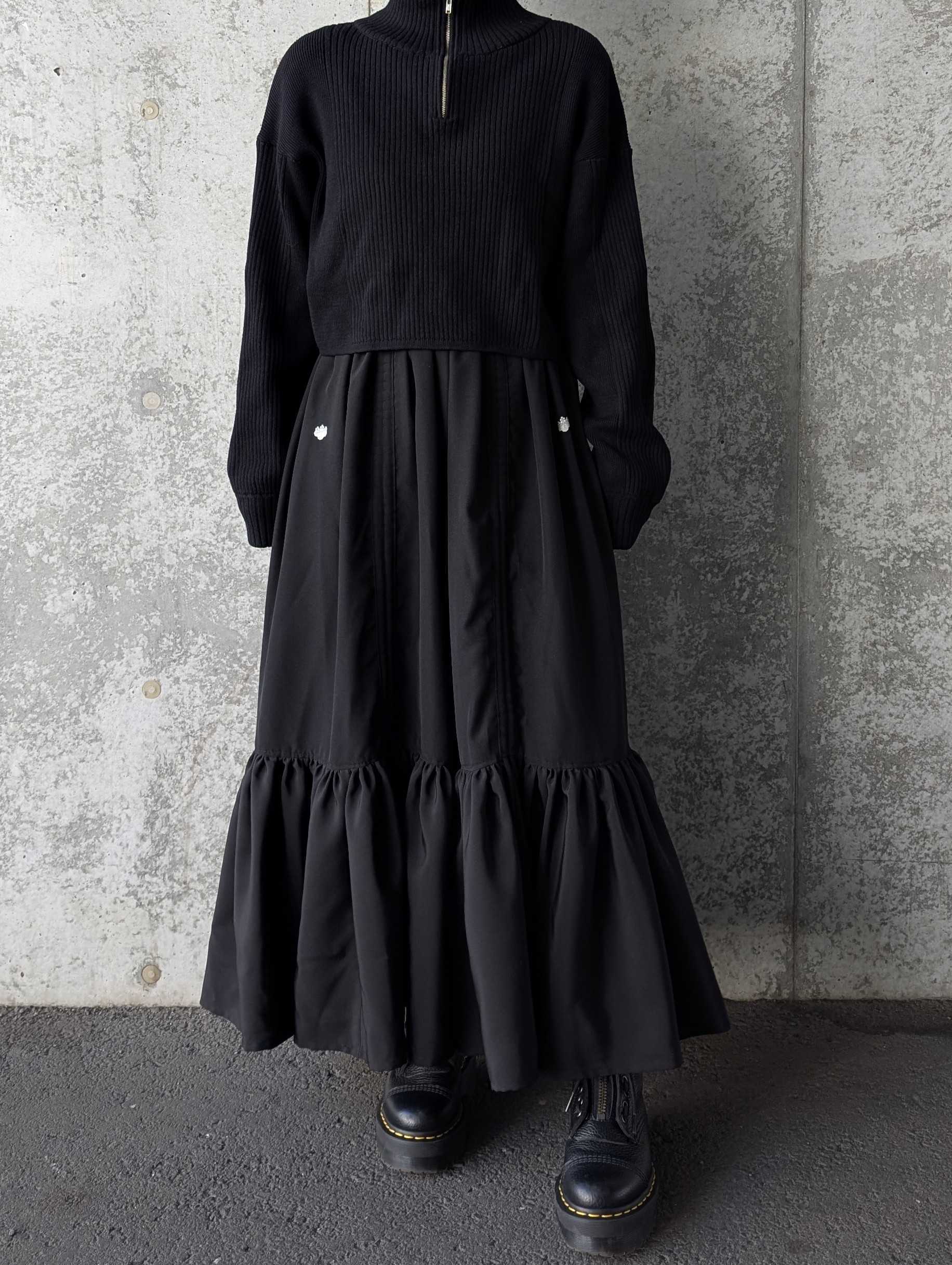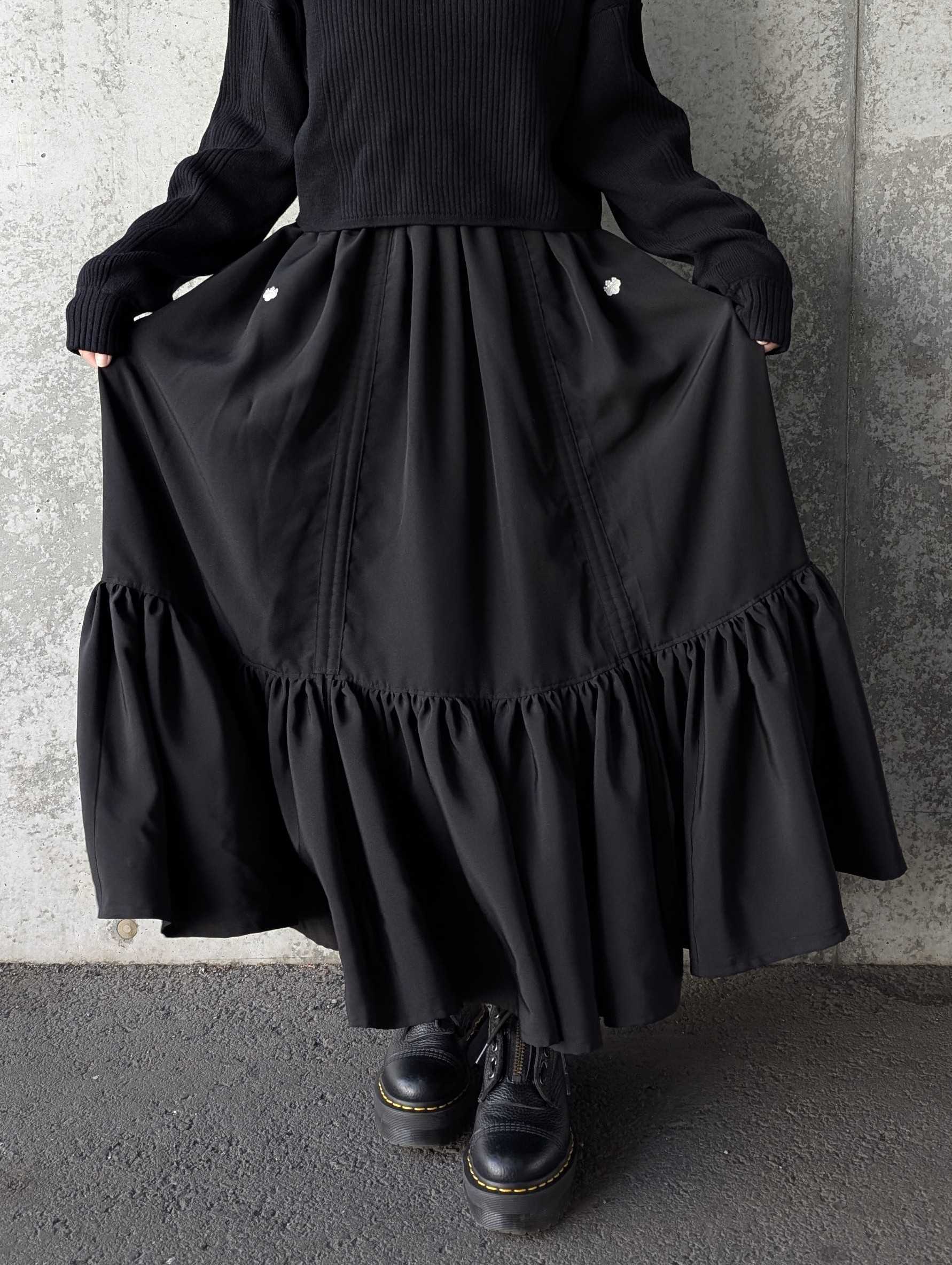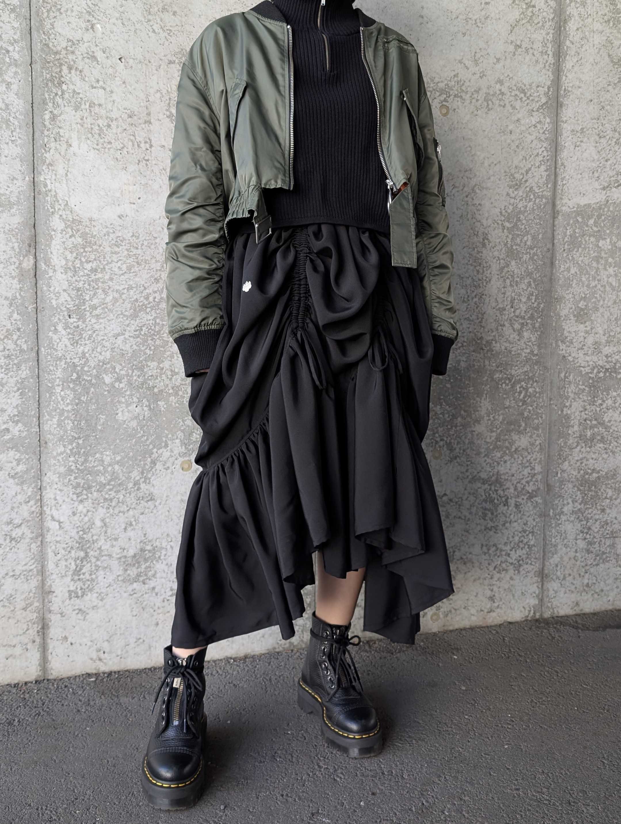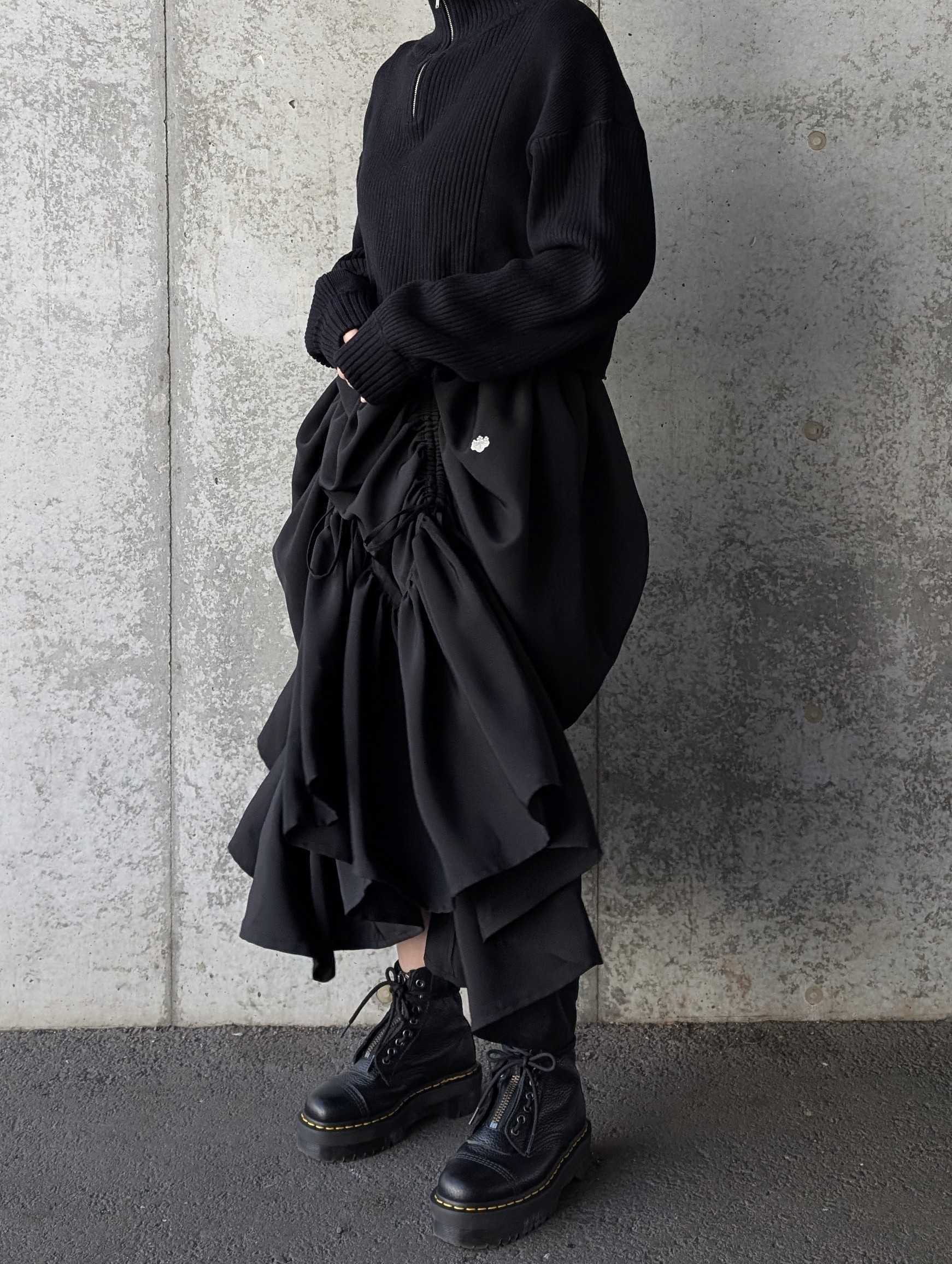 黒紋付をリメイクし、多角的なドレープ構造を持たせた変形スカート。