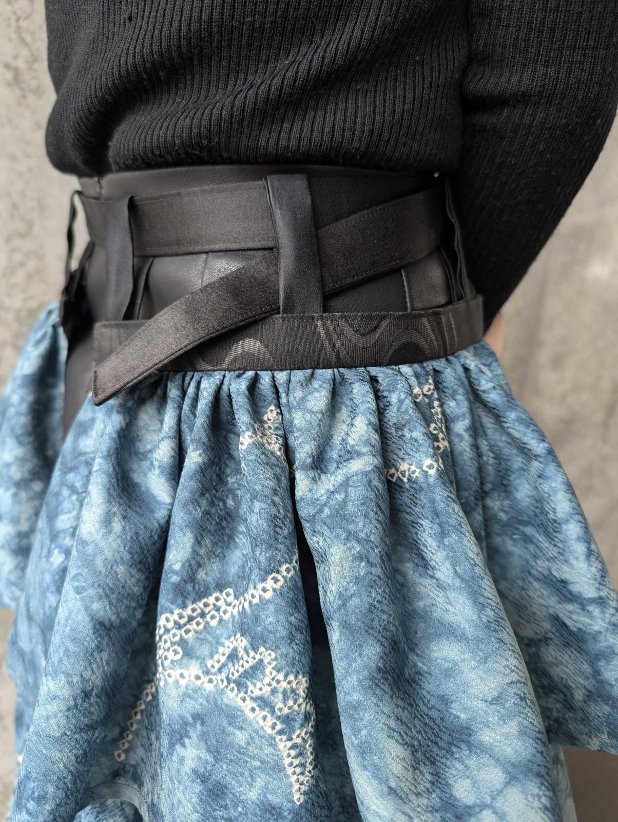 藍色の絞り小紋をリメイクした、アタッチメントフリル。