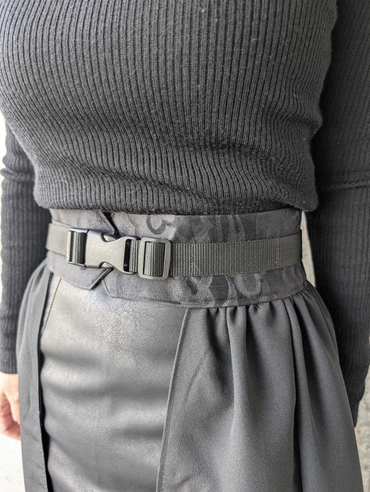 ウエスト部分には黒帯を使用することで世界観を統一しています。