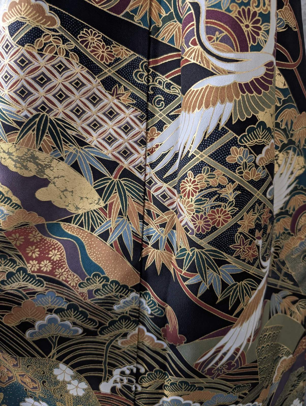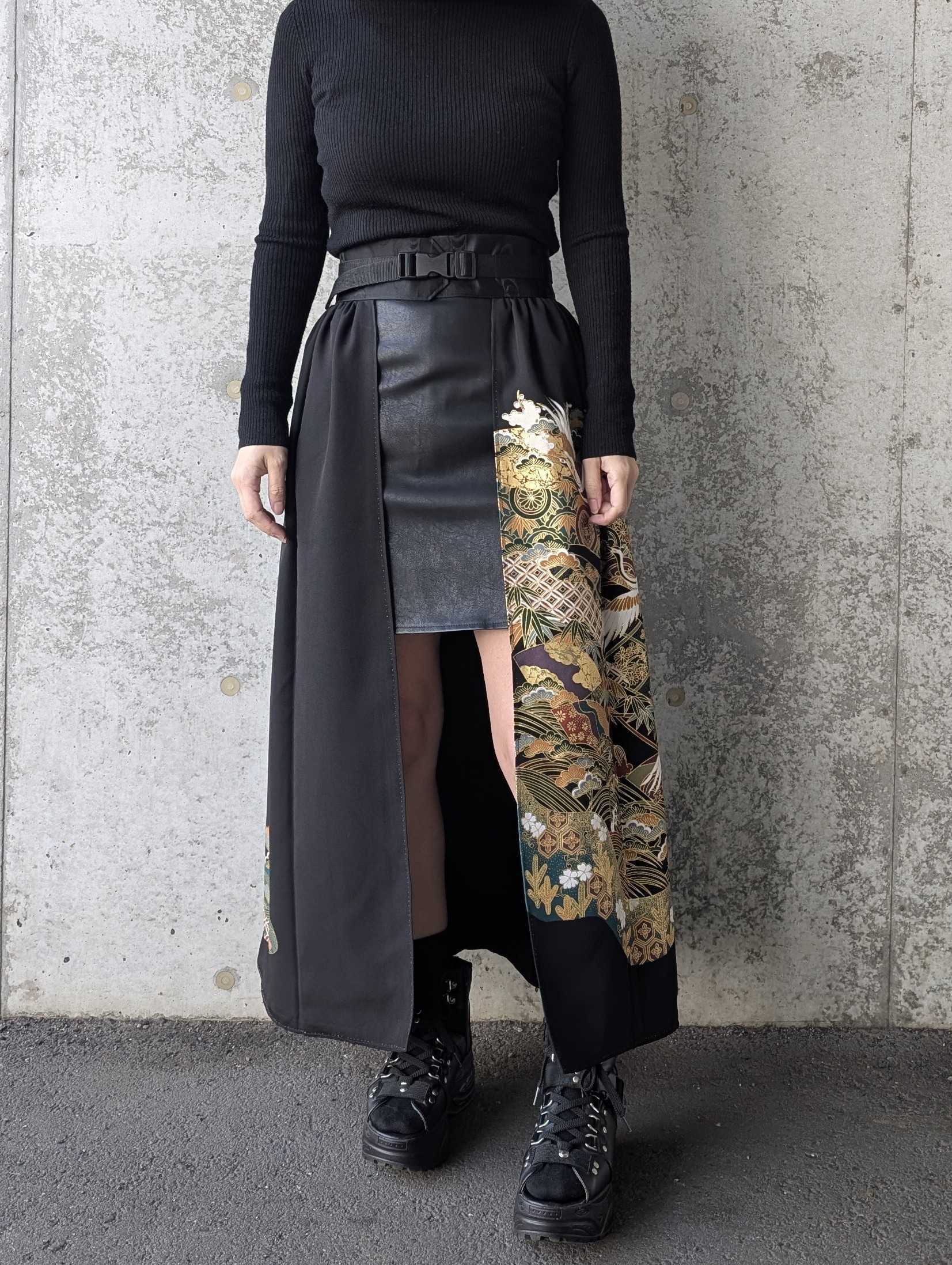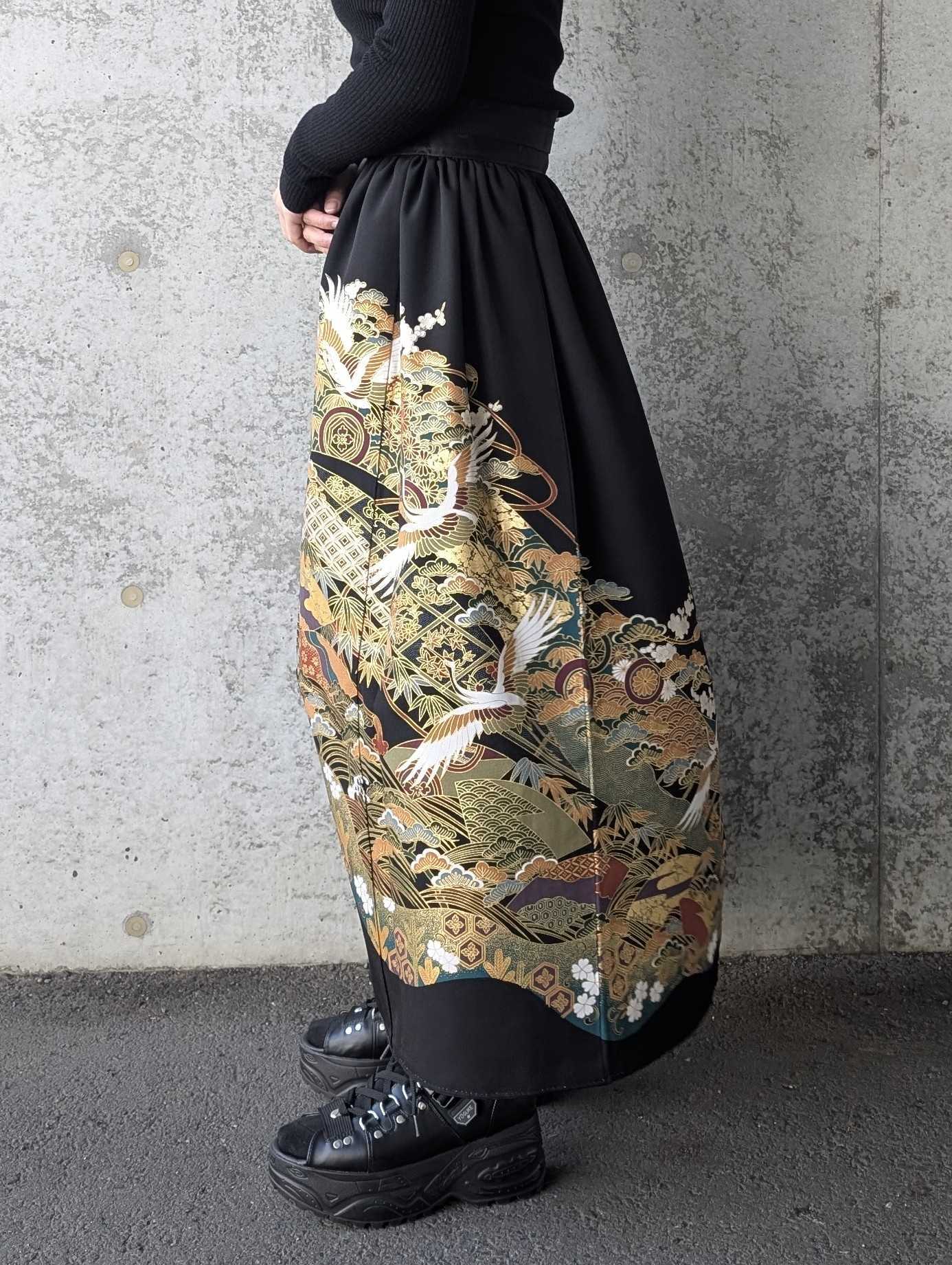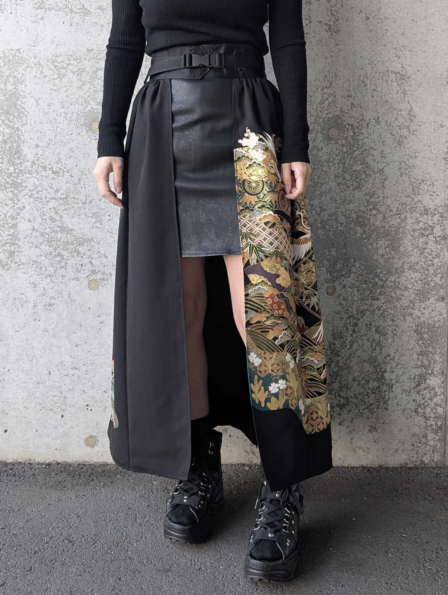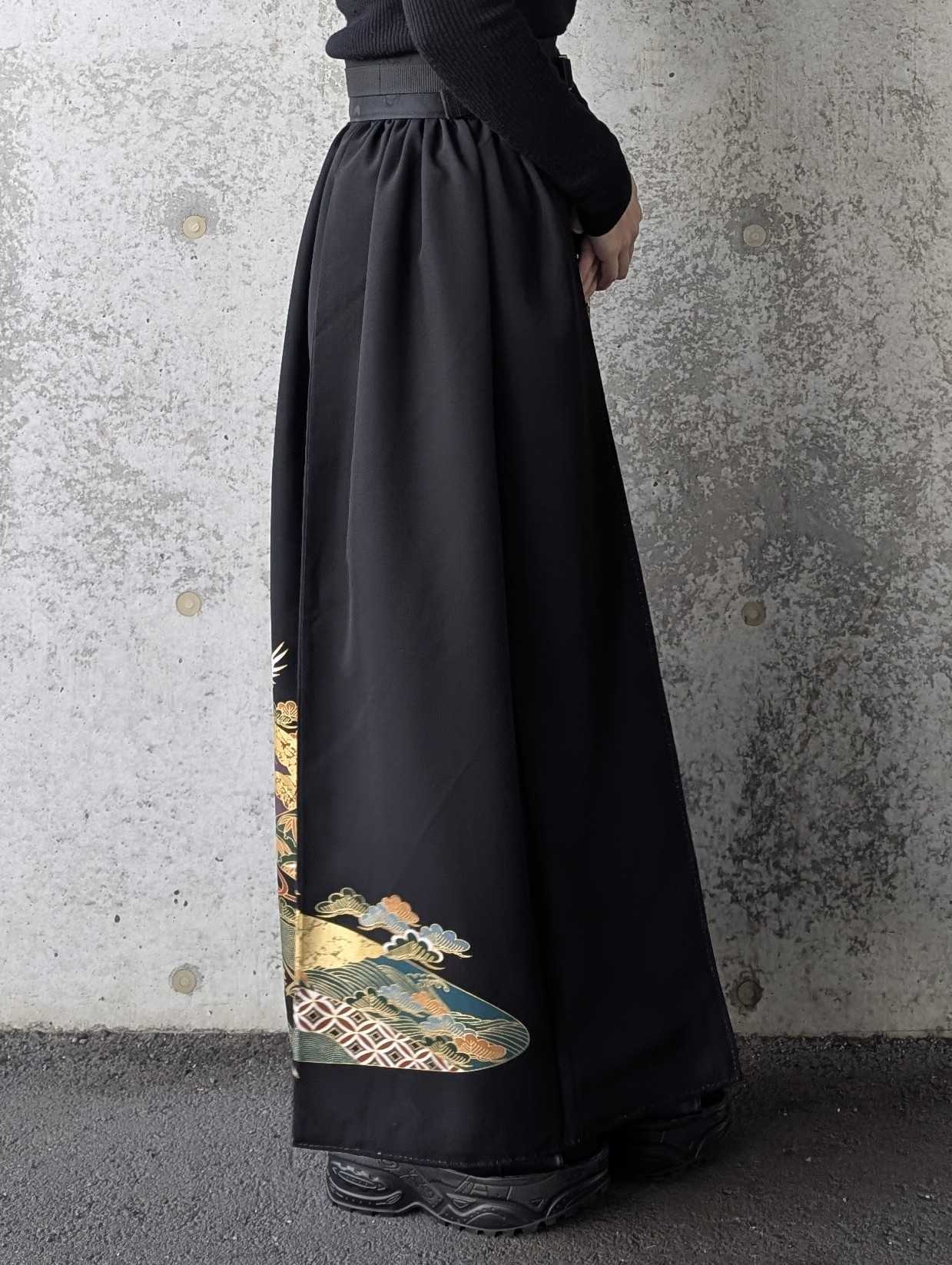 絢爛金彩×吉祥文様の黒留袖をリメイクしたオーバースカート。