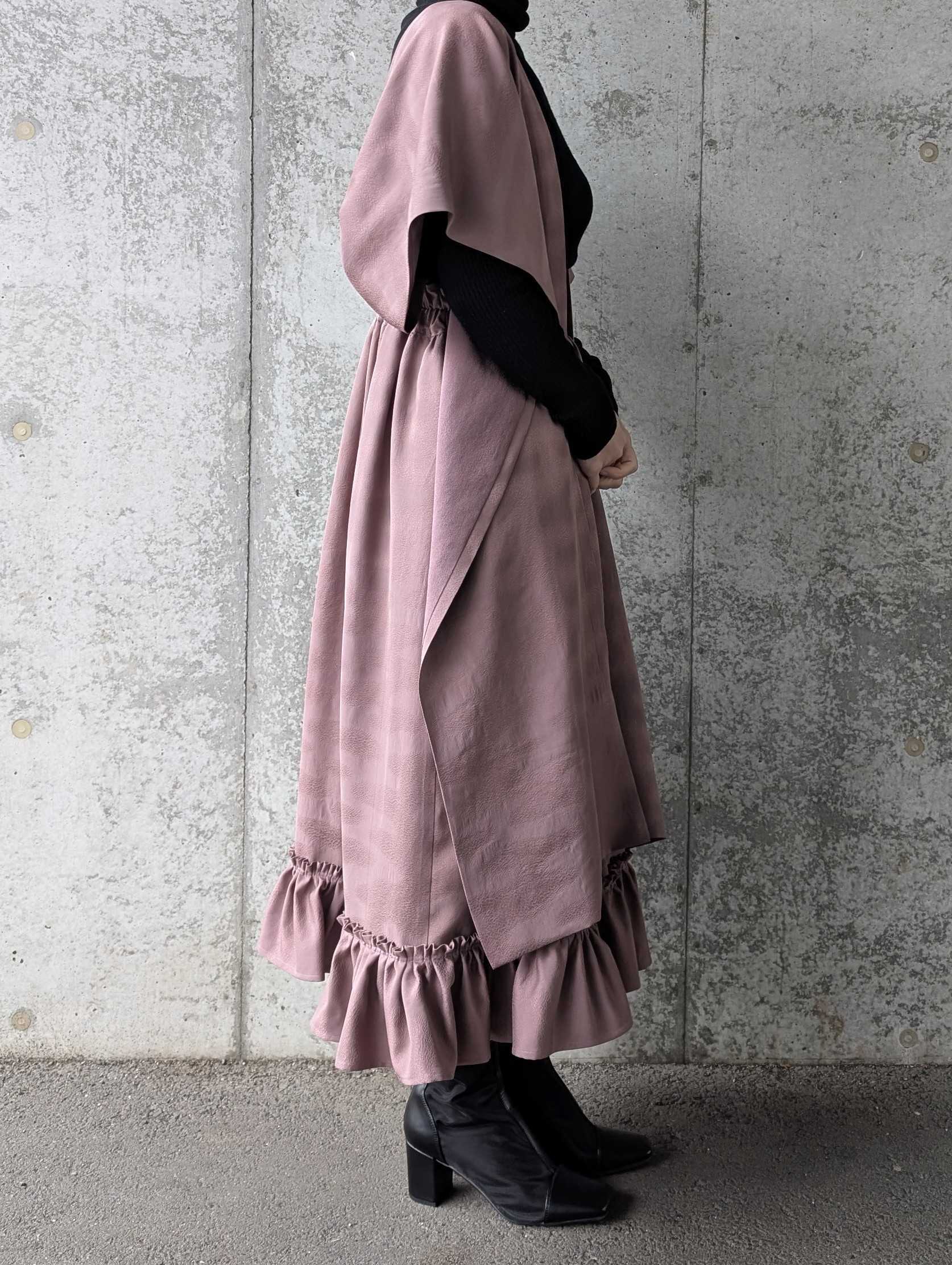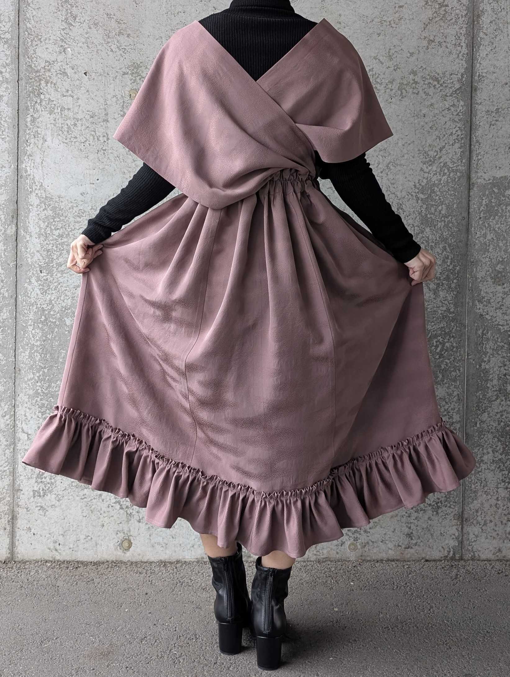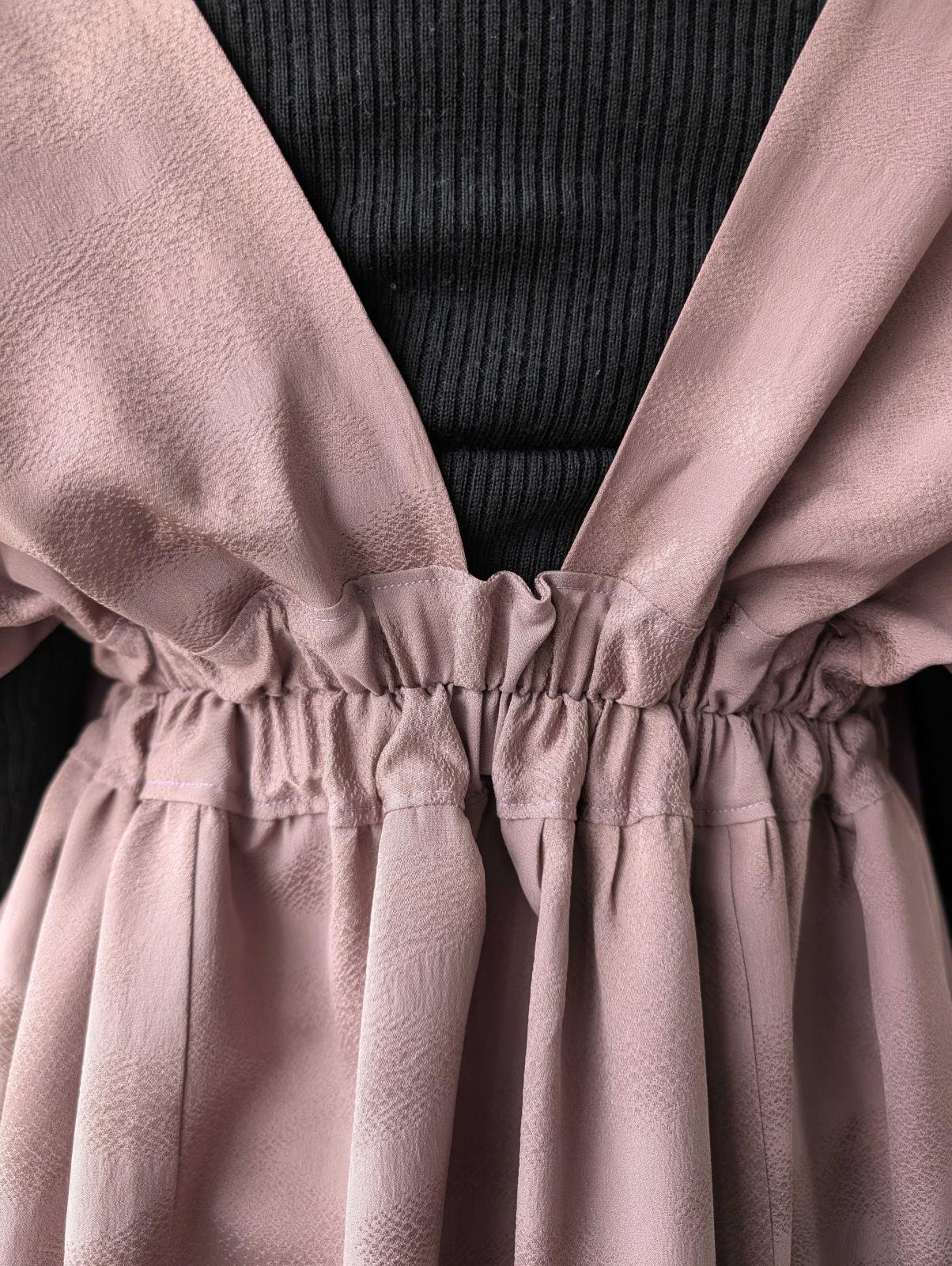 深く落ち着いた滅紫(けしむらさき)の小紋をリメイクしたワンピース。