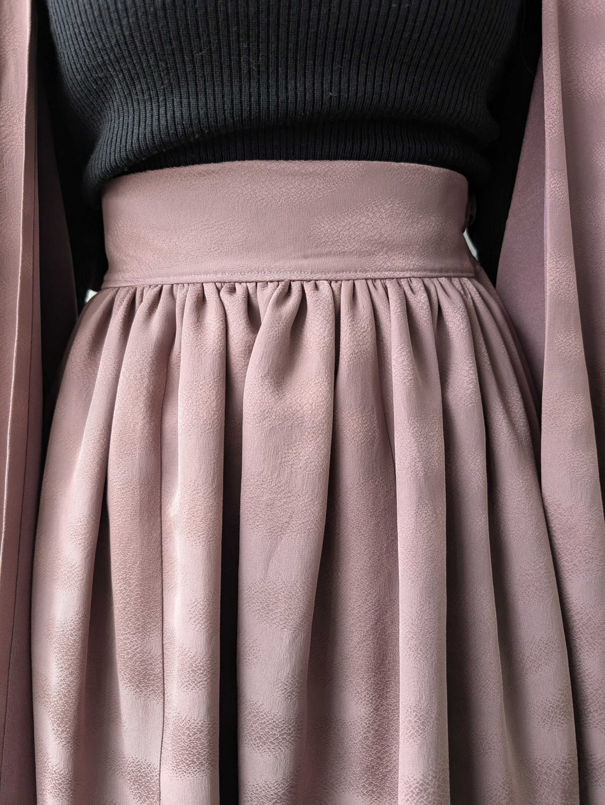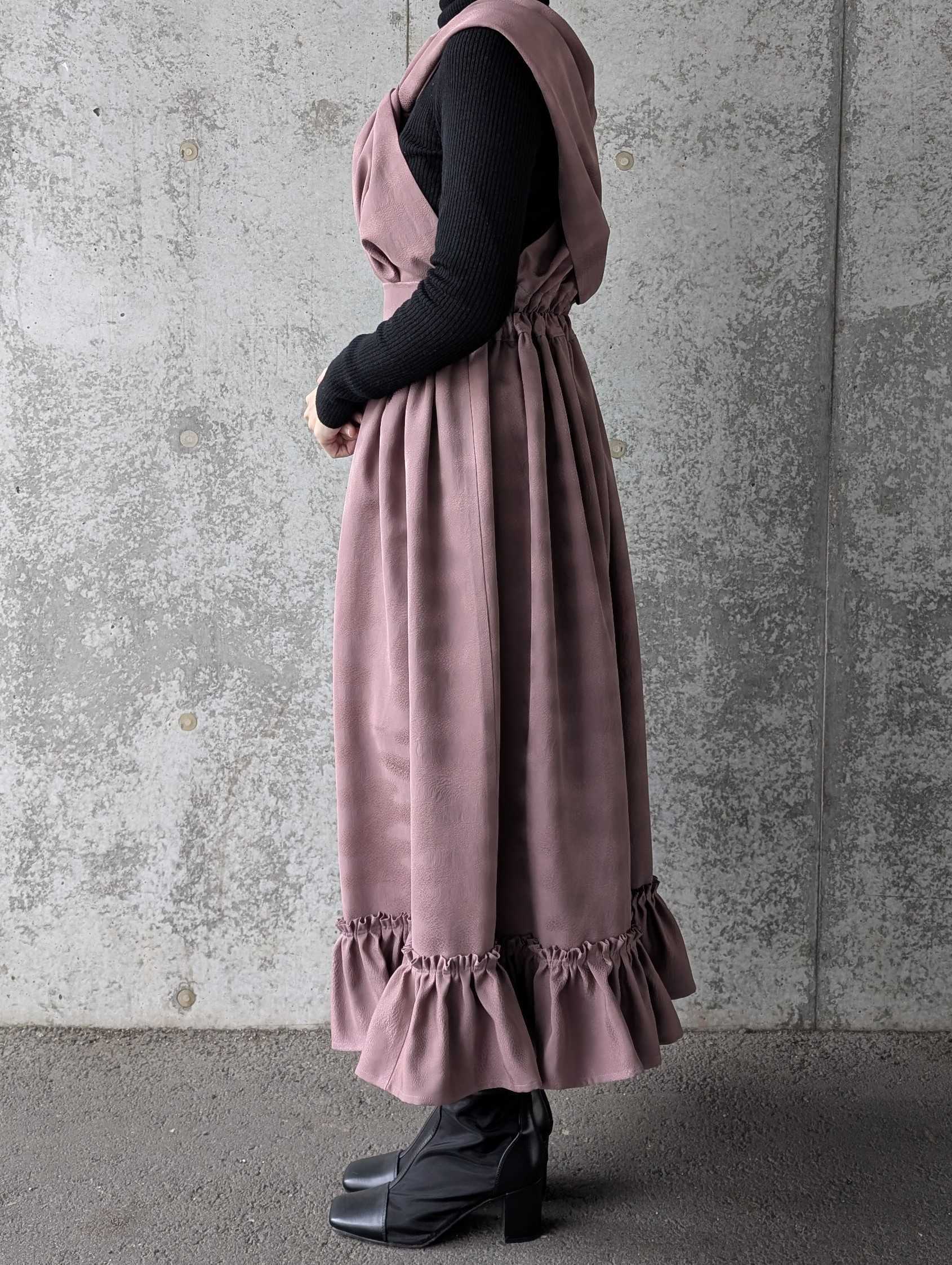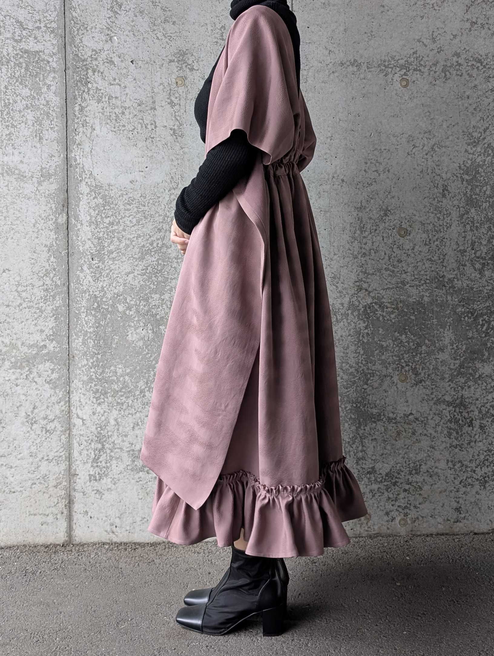 深く落ち着いた滅紫(けしむらさき)の小紋をリメイクしたワンピース。
