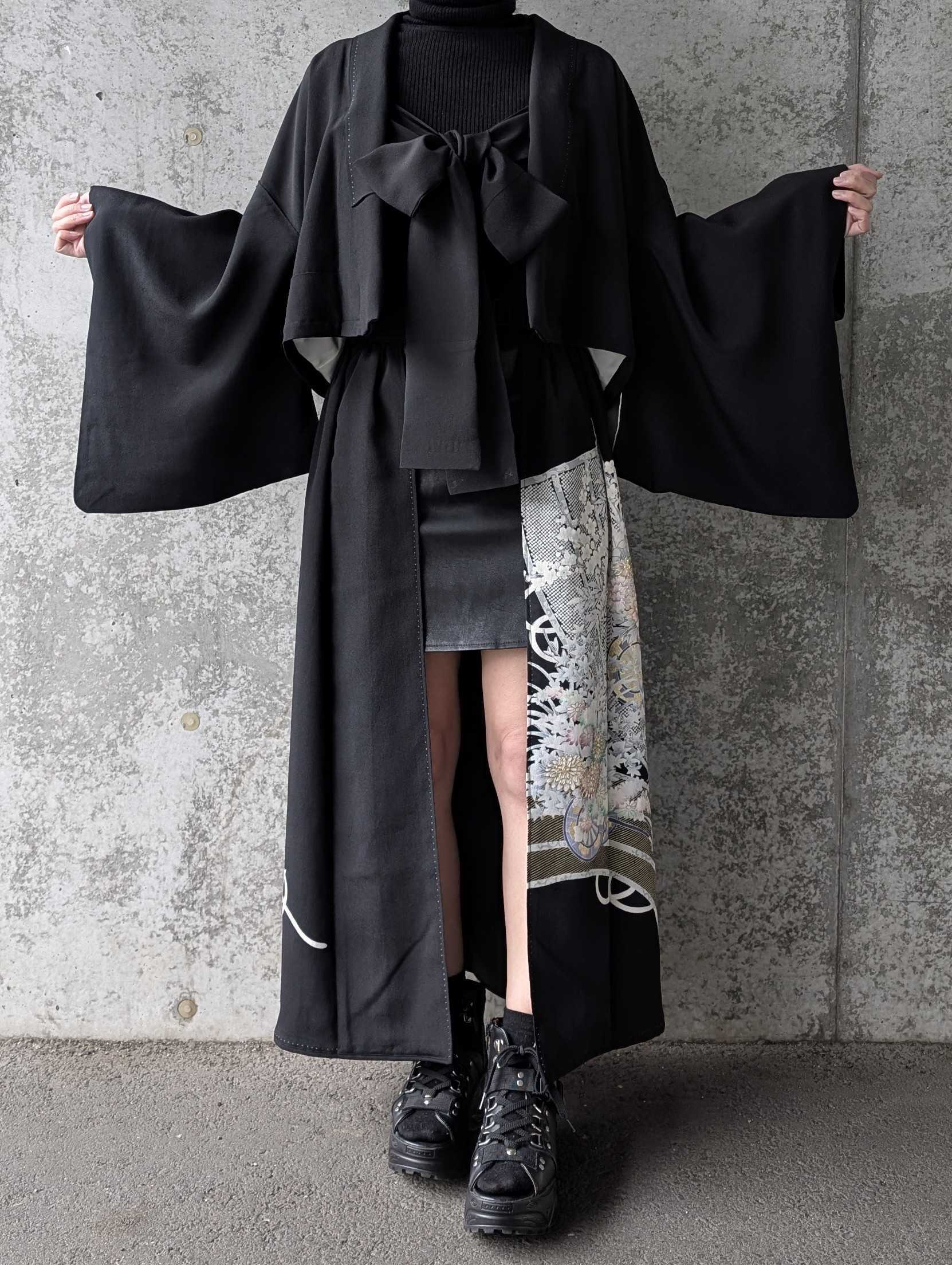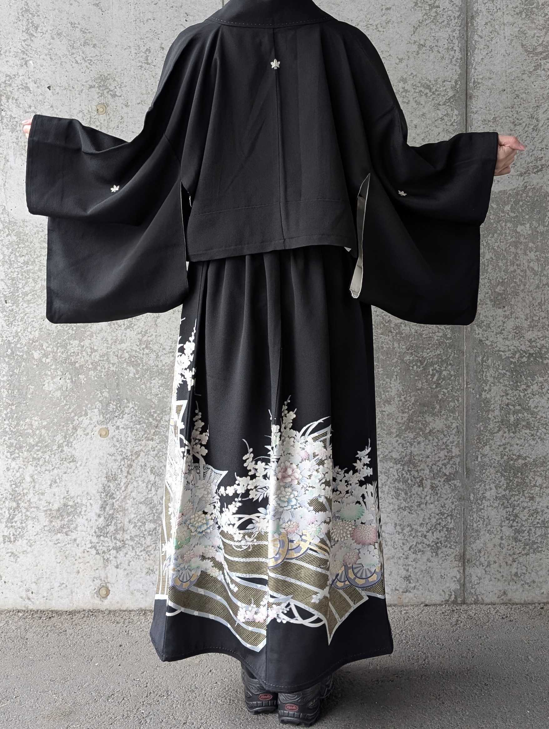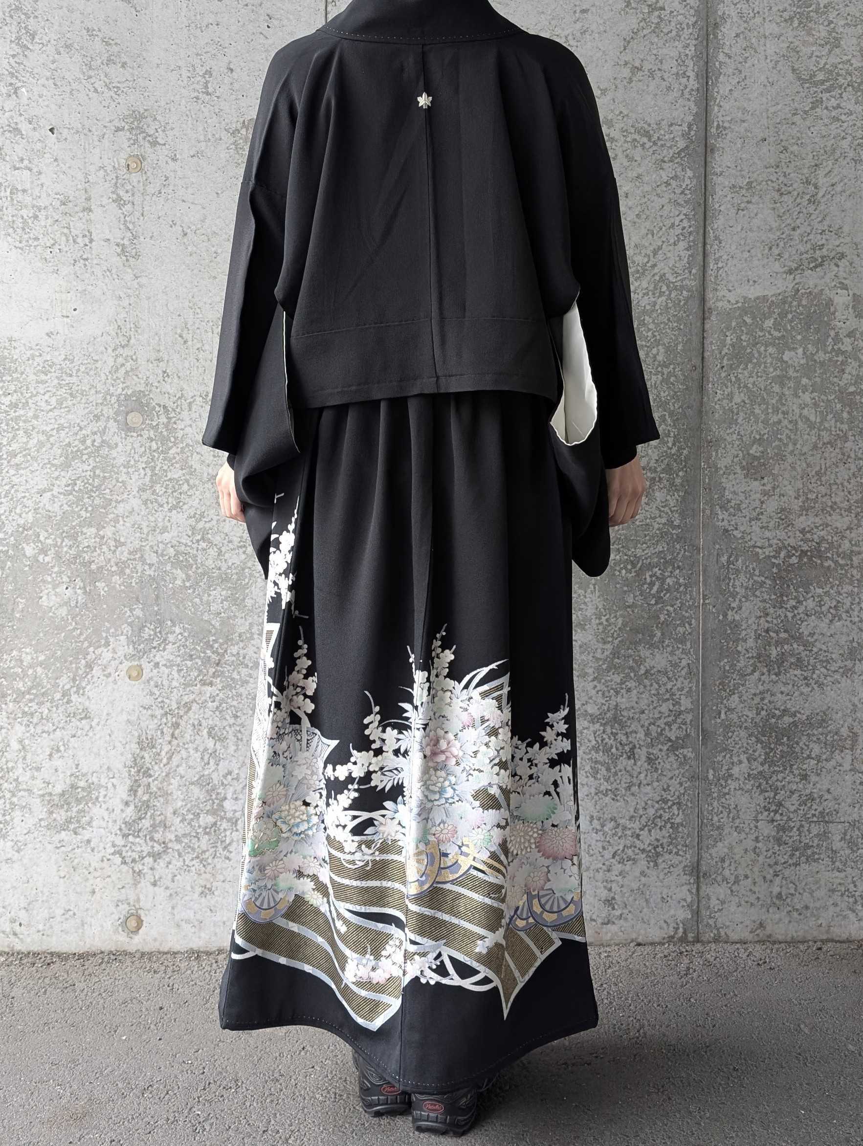 【金駒牡丹×花車】黒留袖オーバースカート&リボンジャケットセットアップ