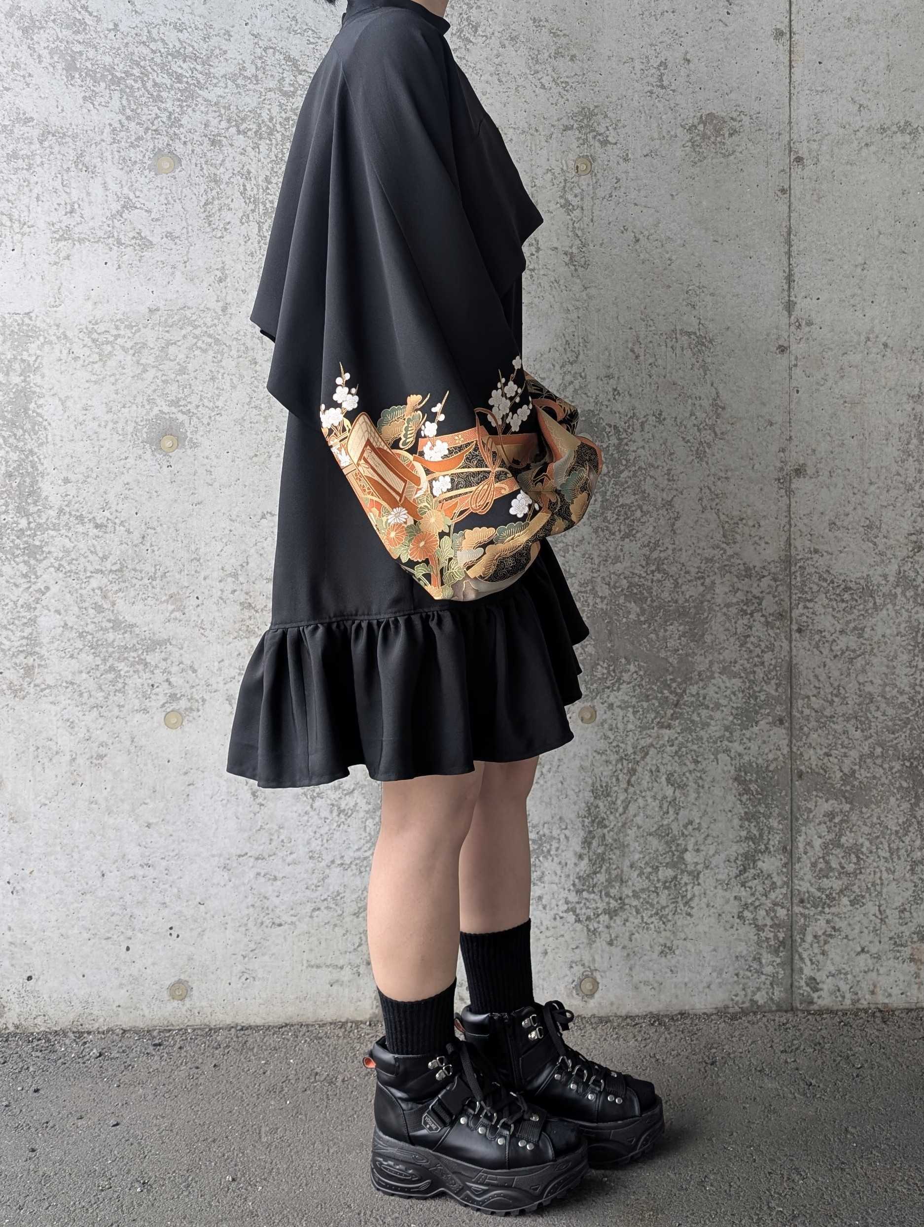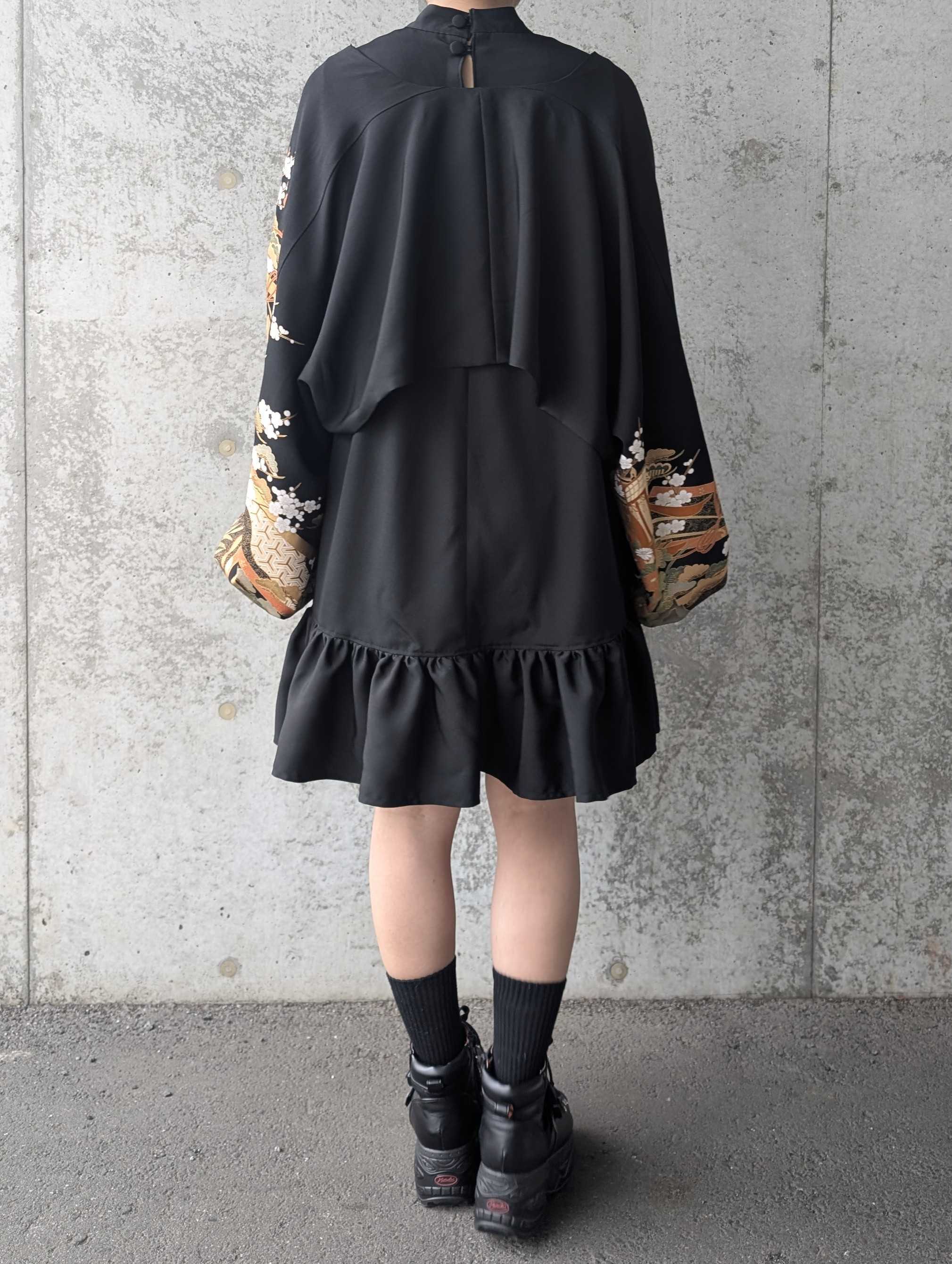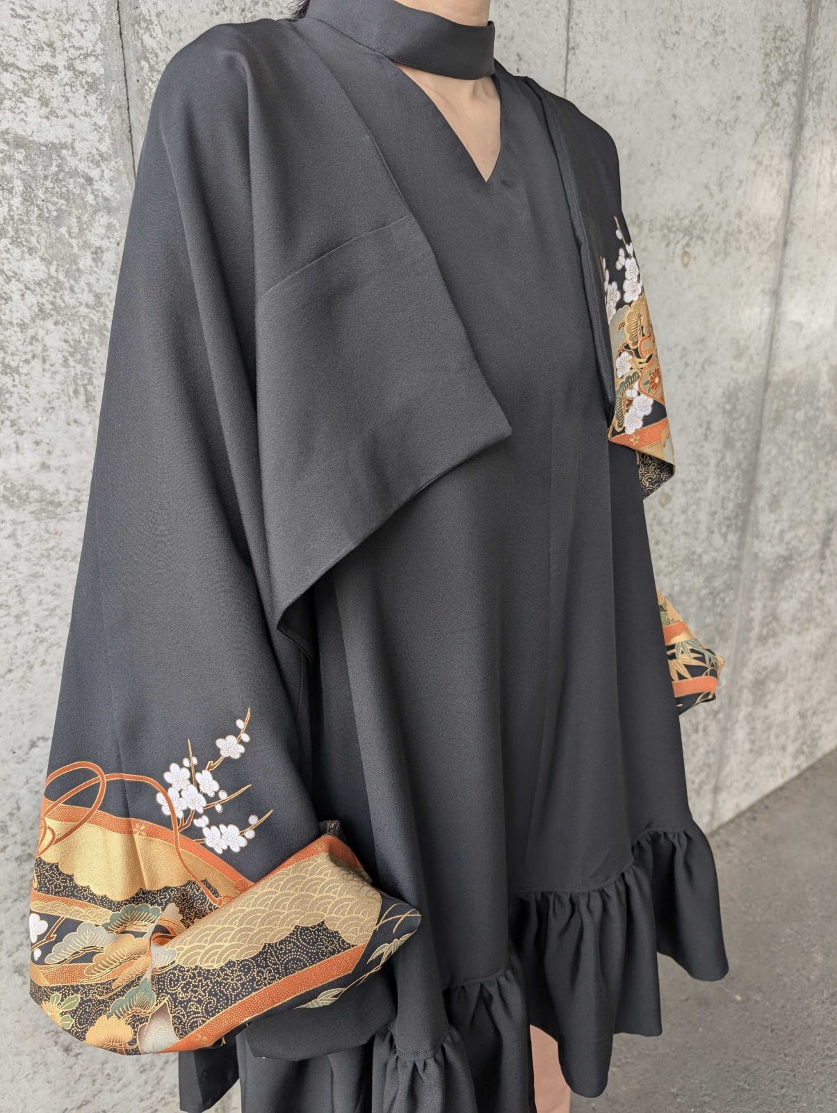 御所車や四季草花文様の黒留袖をボレロとドレスのセットアップへと再構築。