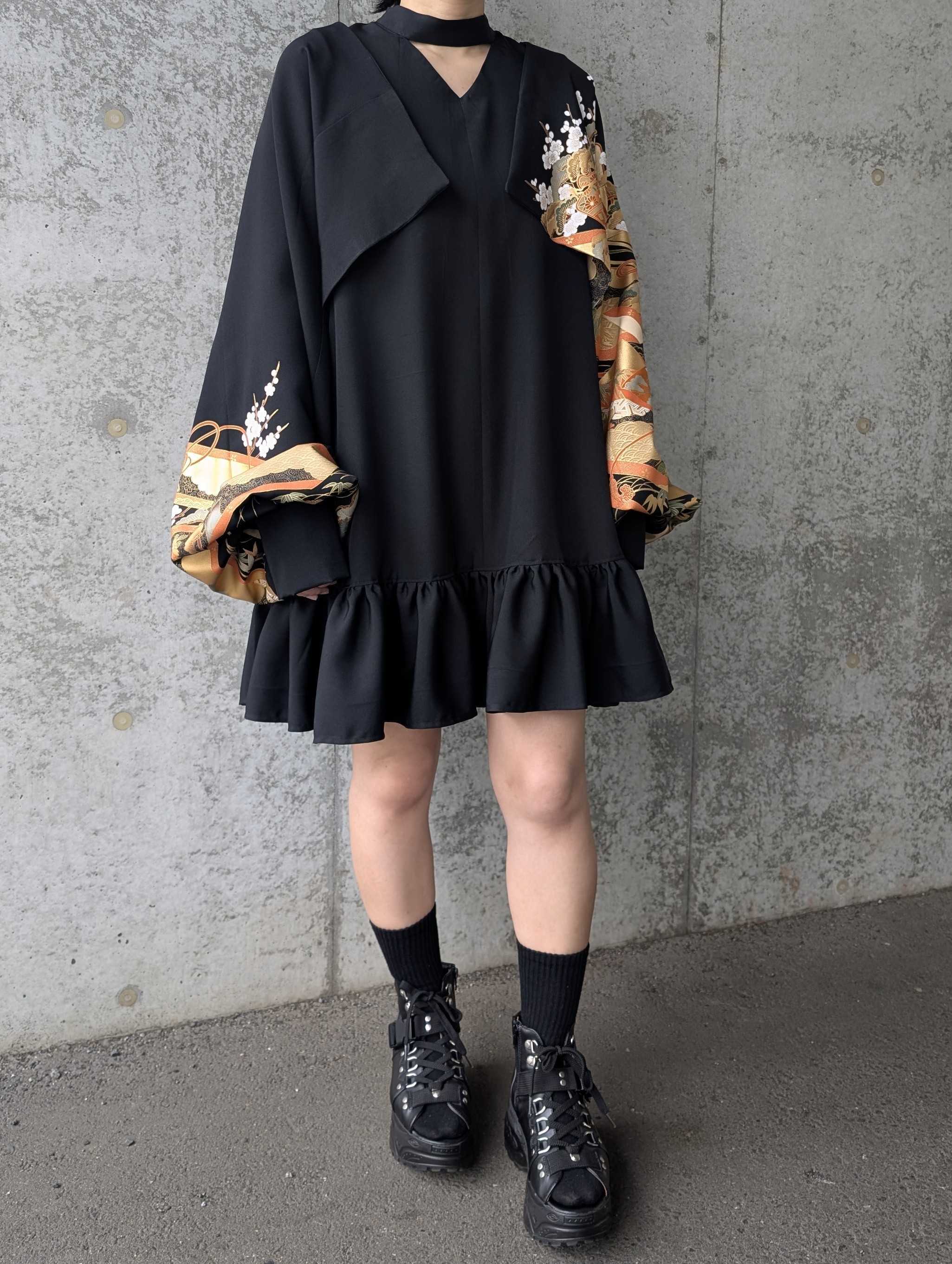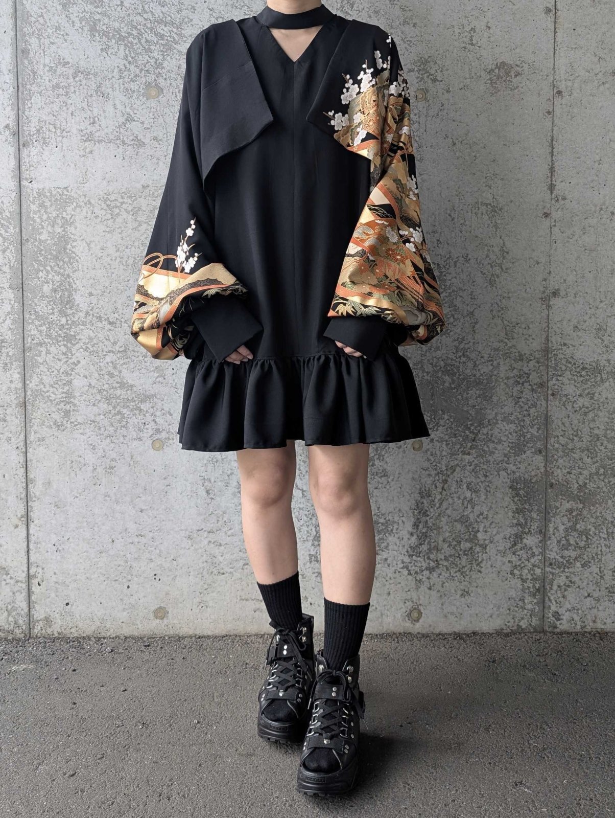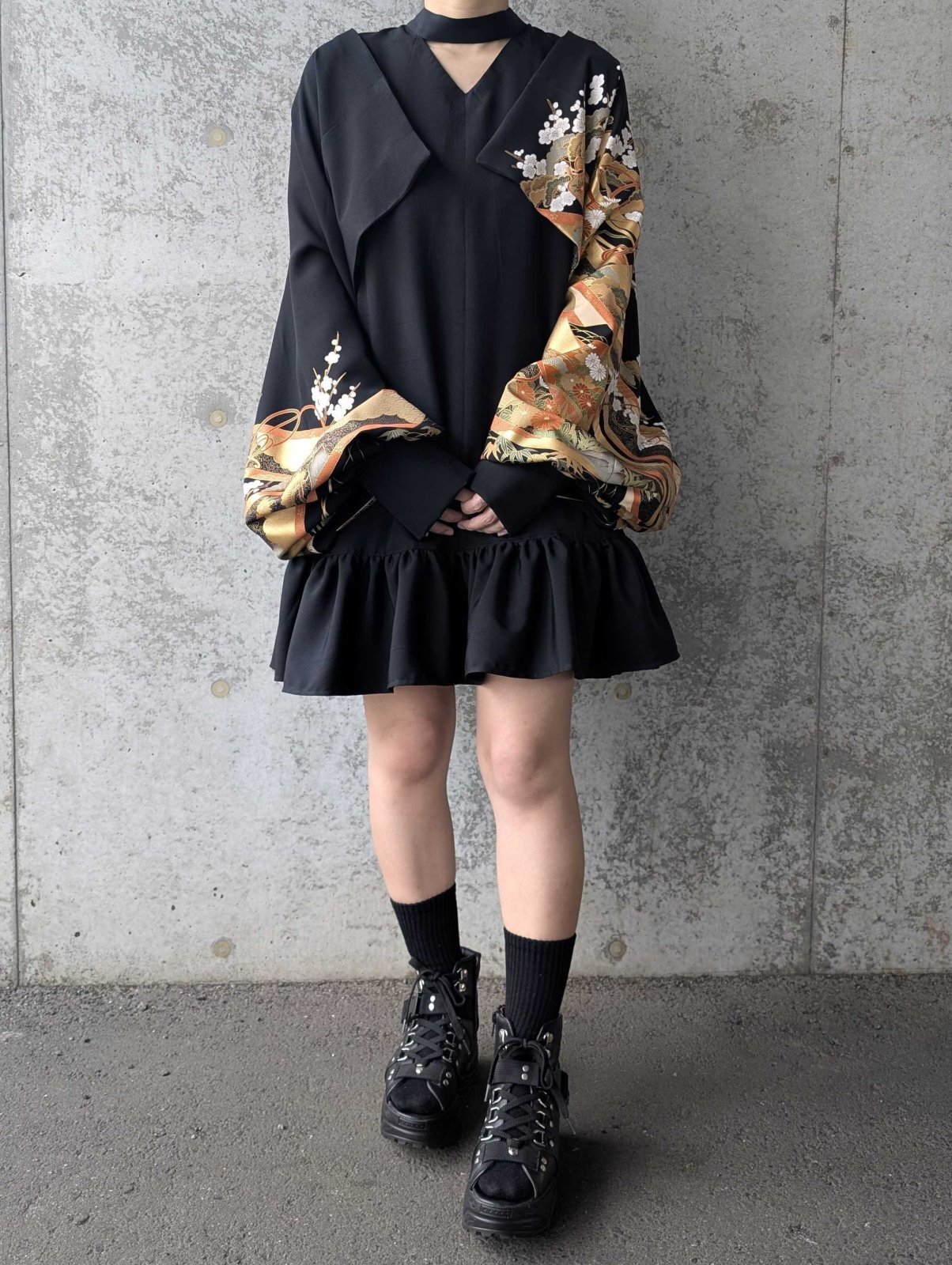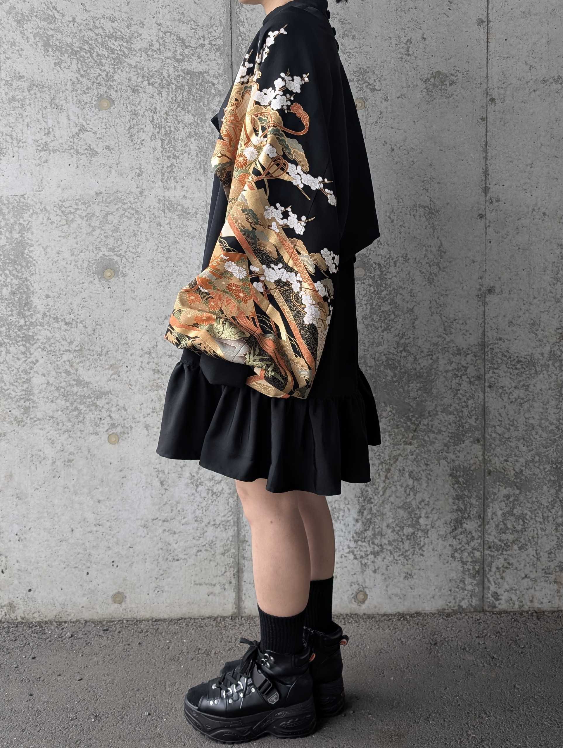 御所車や四季草花文様の黒留袖をボレロとドレスのセットアップへと再構築。