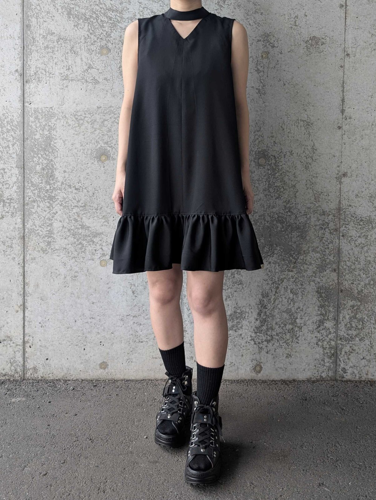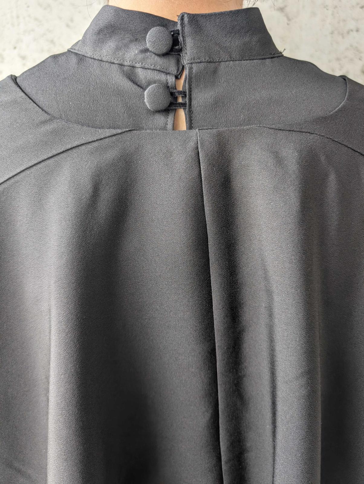 首元は、チョーカーネックとVネックを融合させたシャープかつモードな構造を採用しています。
