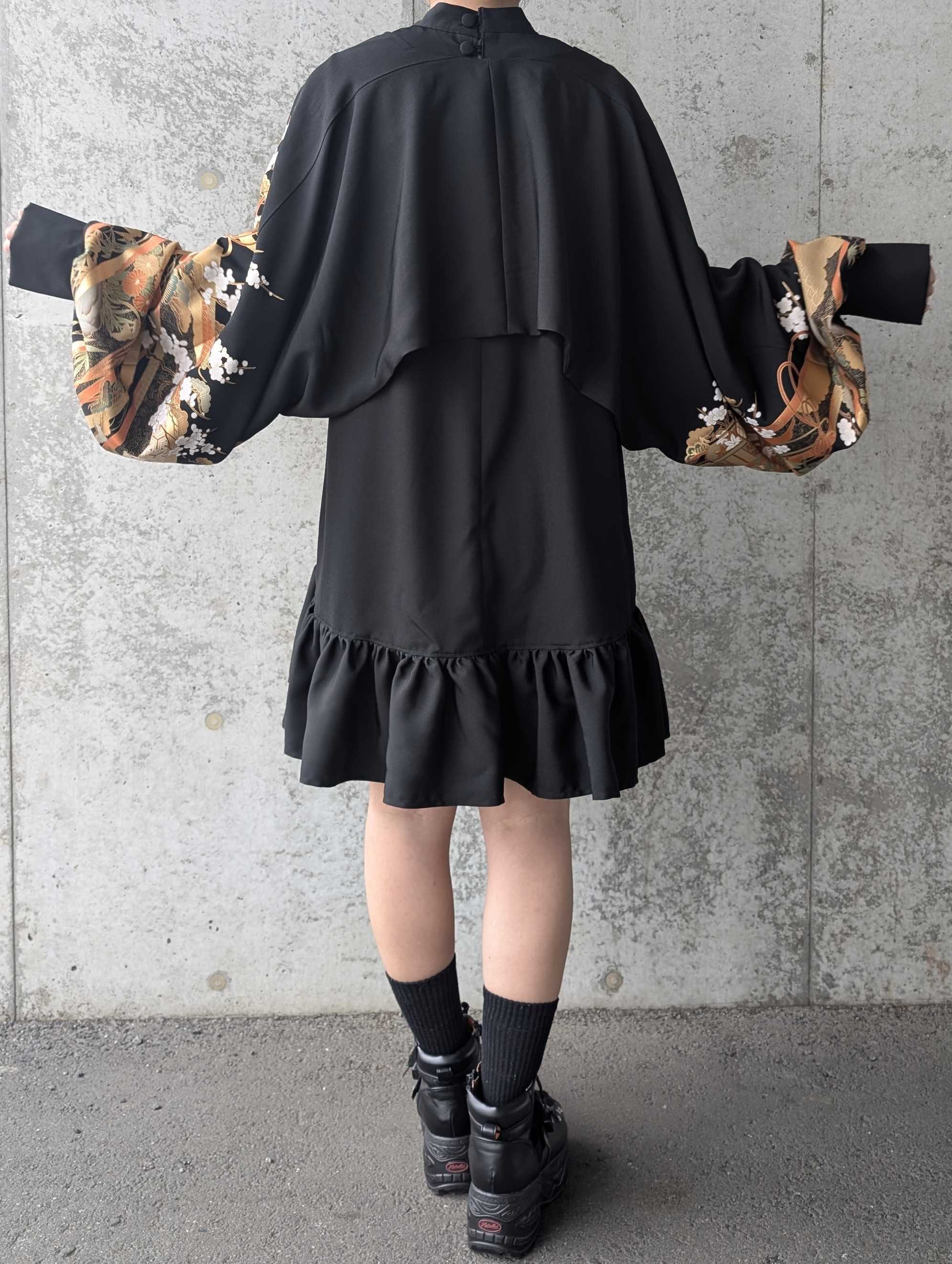 【四季草花×丸に剣片喰紋】黒留袖ボレロ&チョーカーネックドレス